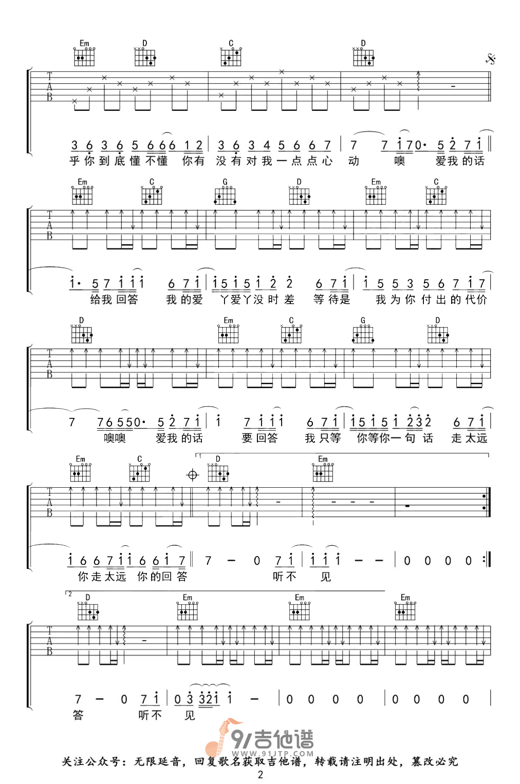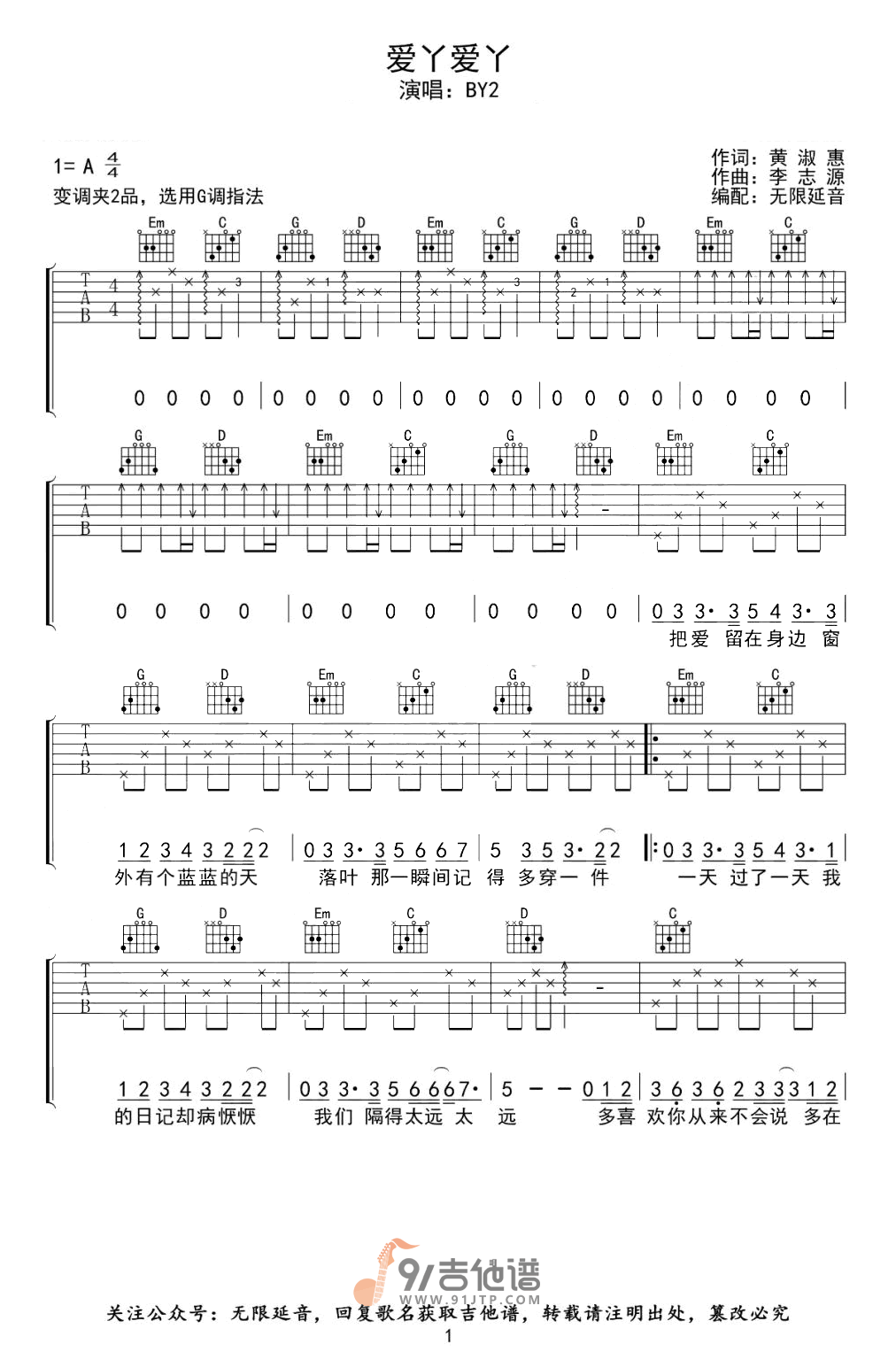 爱丫爱丫吉他谱 - G调吉他弹唱谱 - 原版