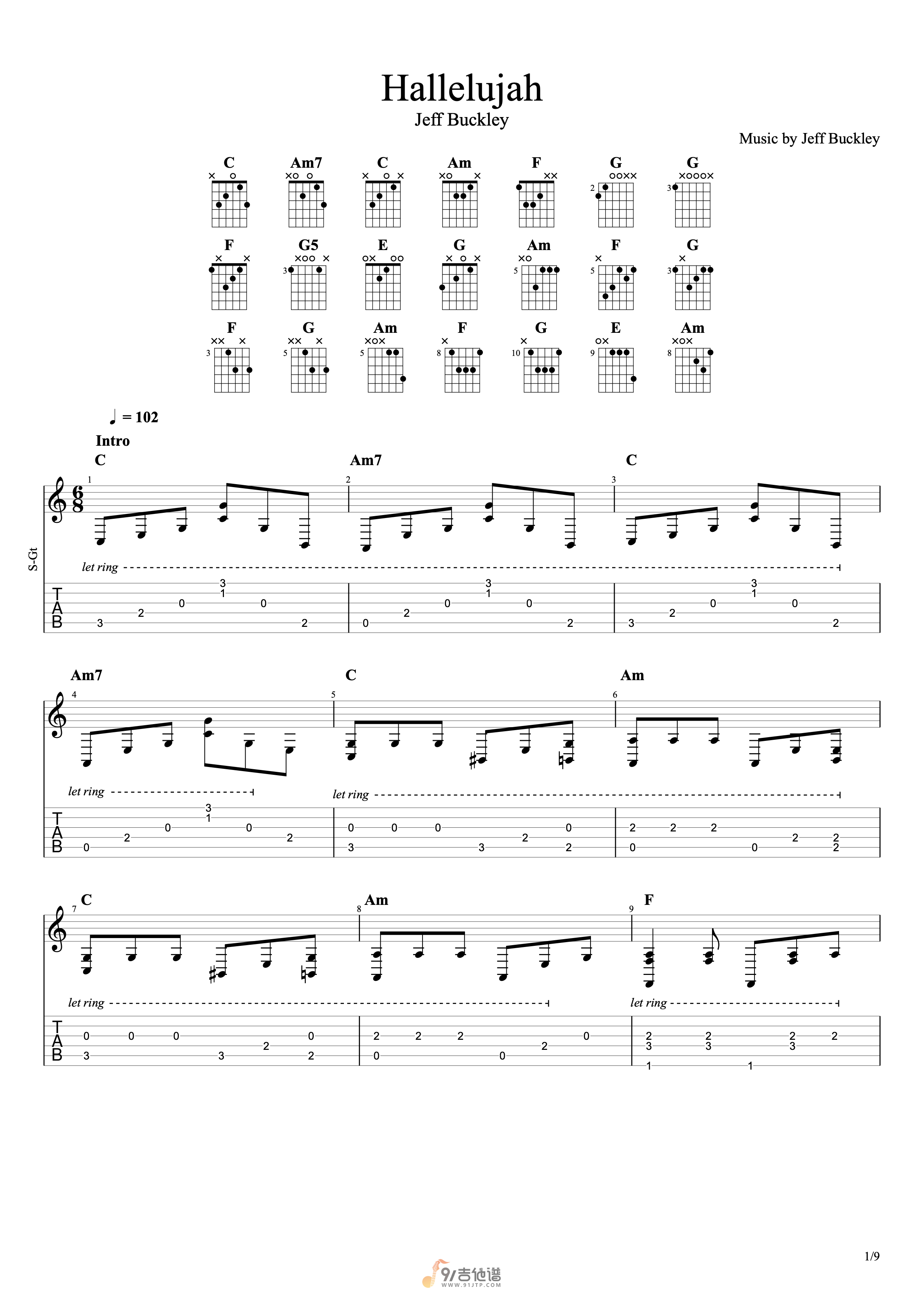 Jeff Buckley——Hallelujah吉他谱 - Jeff - 吉他独奏谱 - 原版