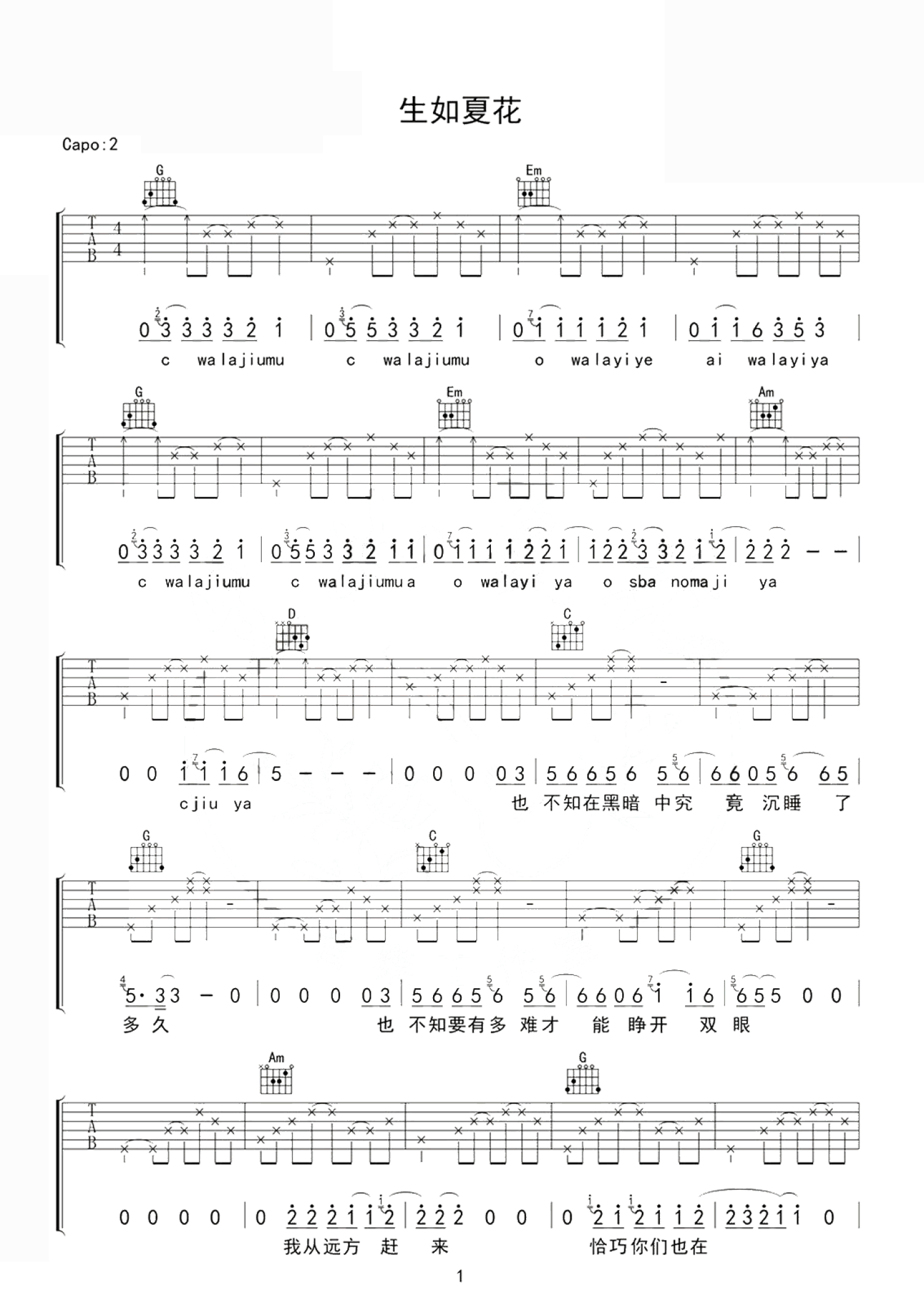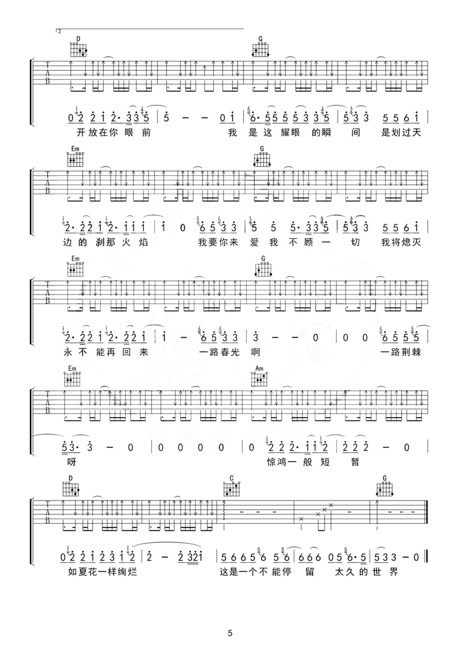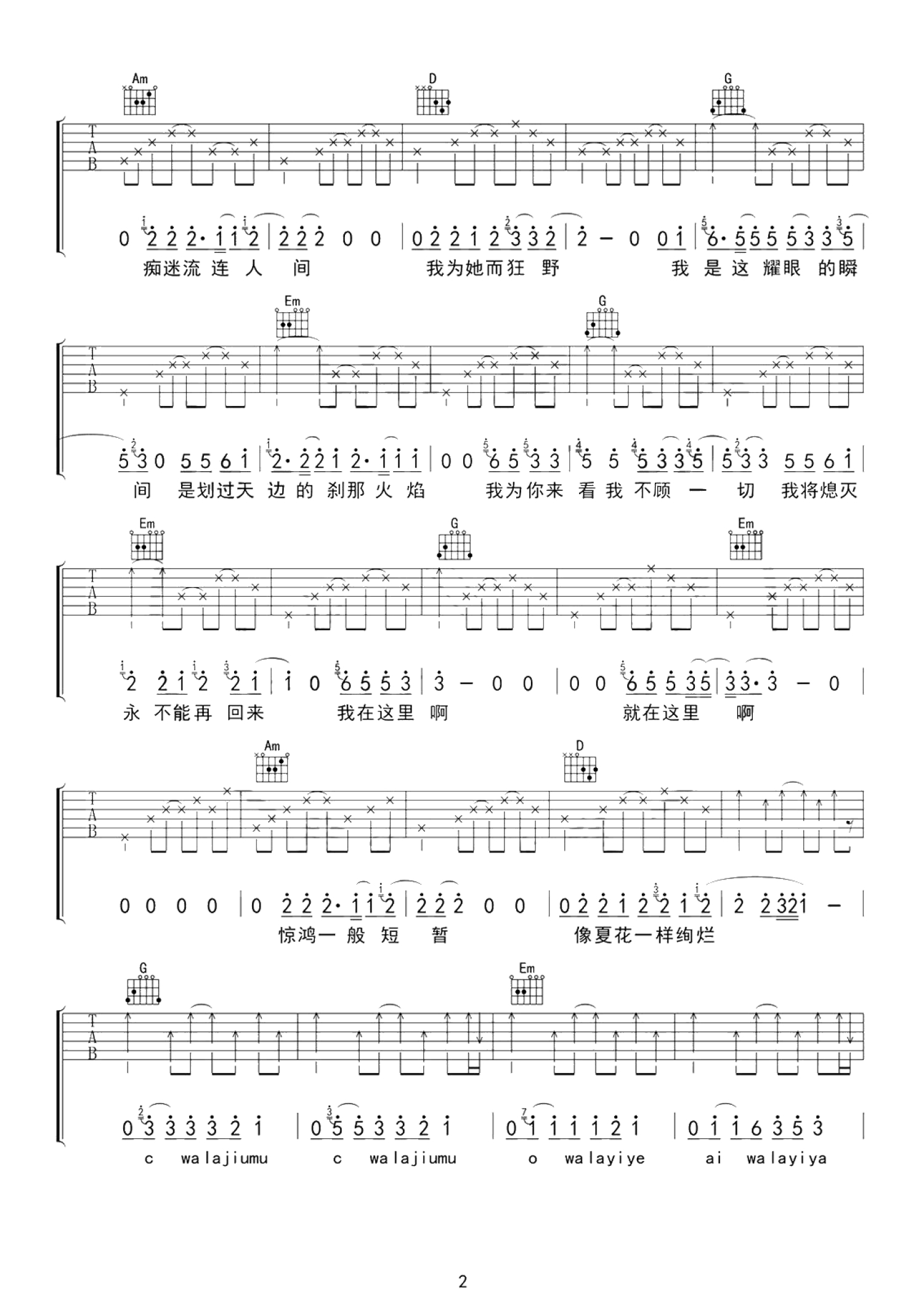 吉他弹唱A调来源:生如夏花吉他音乐工作室5019 浏览2019-10-25 20:30发布图谱共5页