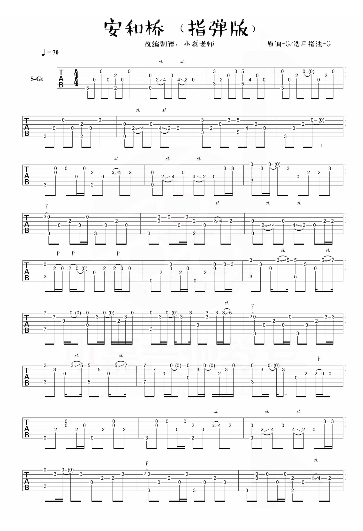 曲谱介绍: 宋冬野《安河桥》吉他谱_G调吉他独奏谱