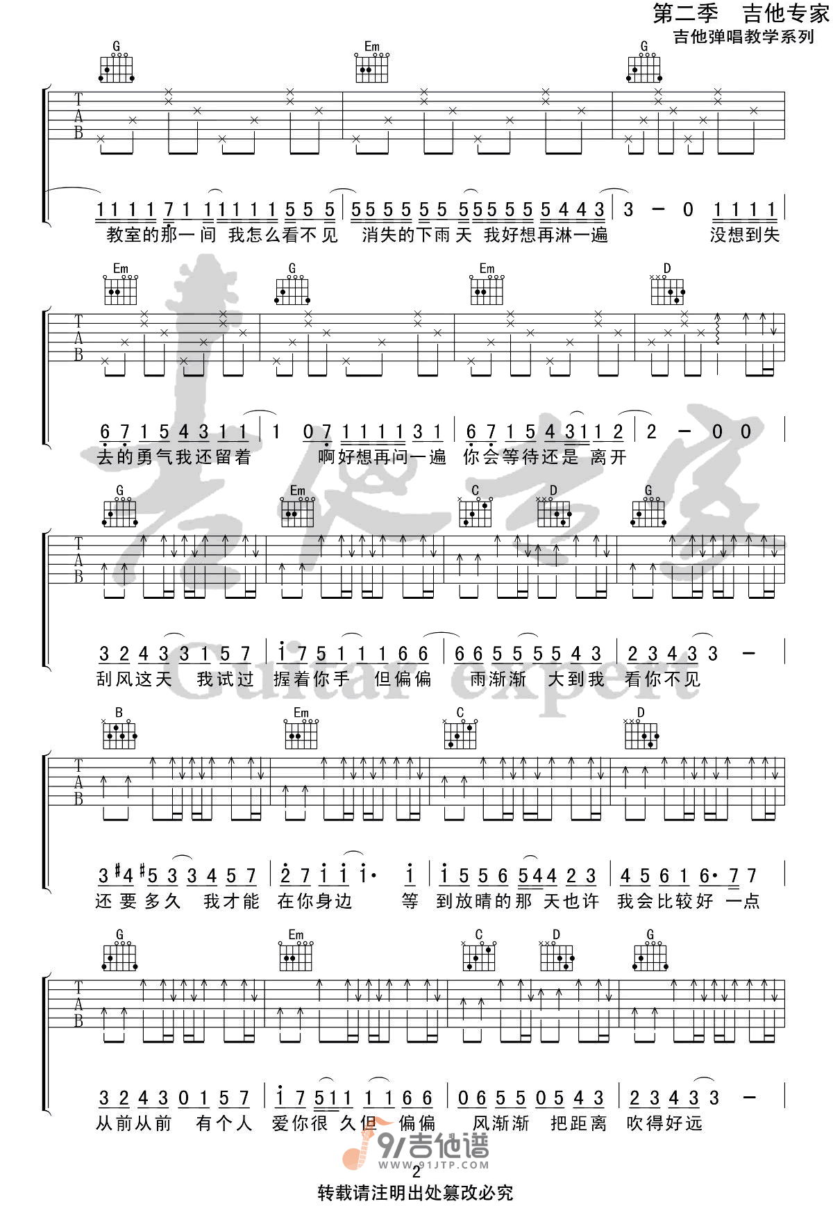 当前位置:琴谱网>吉他弹唱>晴天