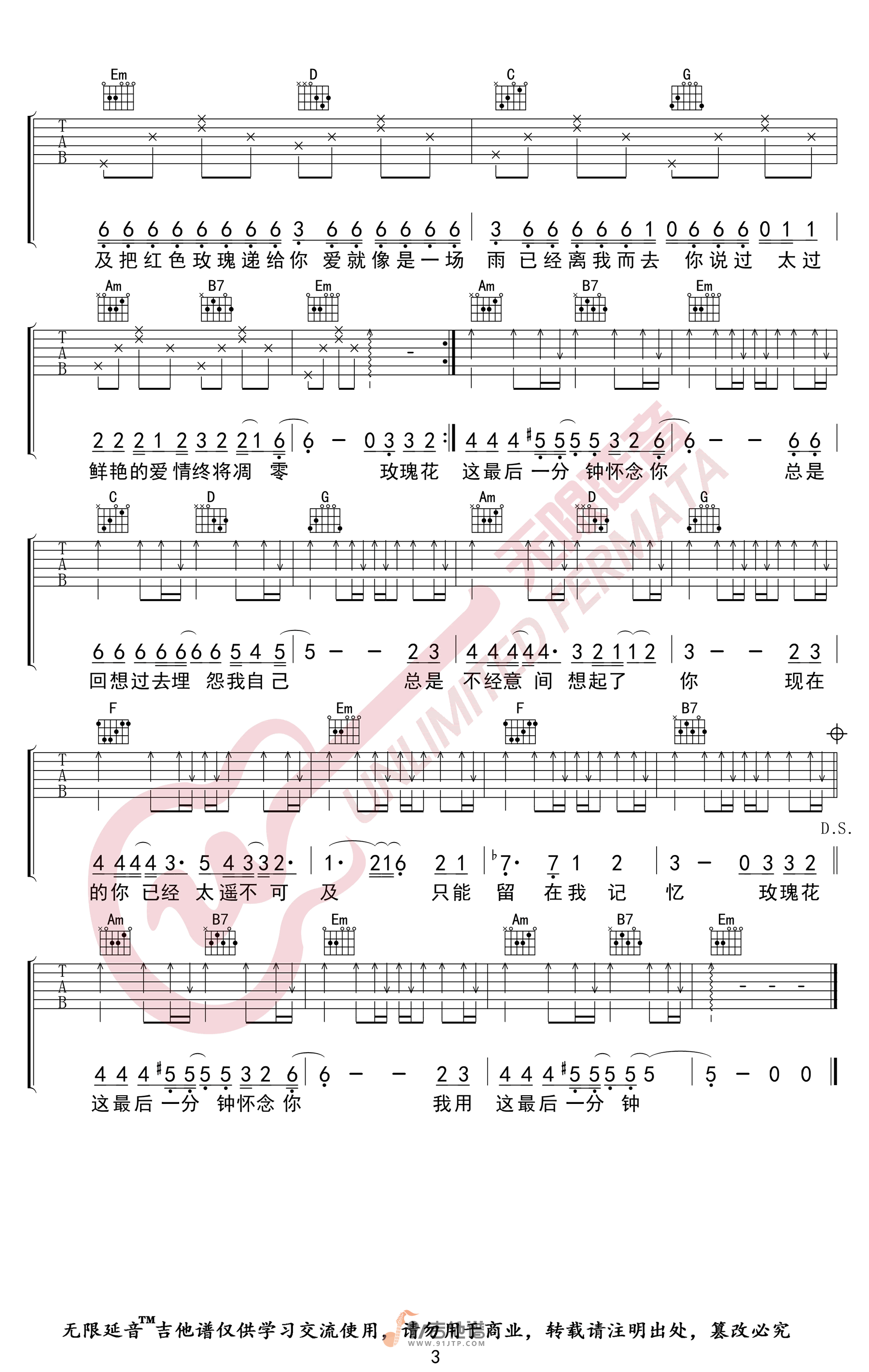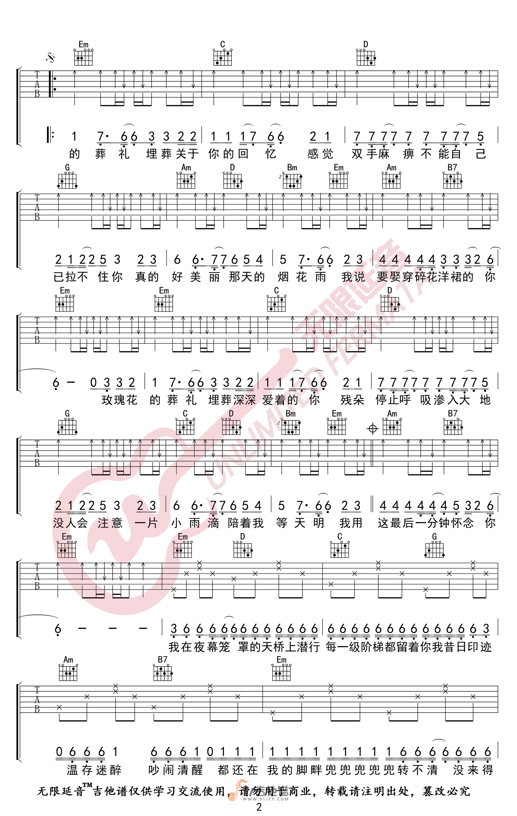 当前位置:琴谱网>吉他弹唱>玫瑰花的葬礼