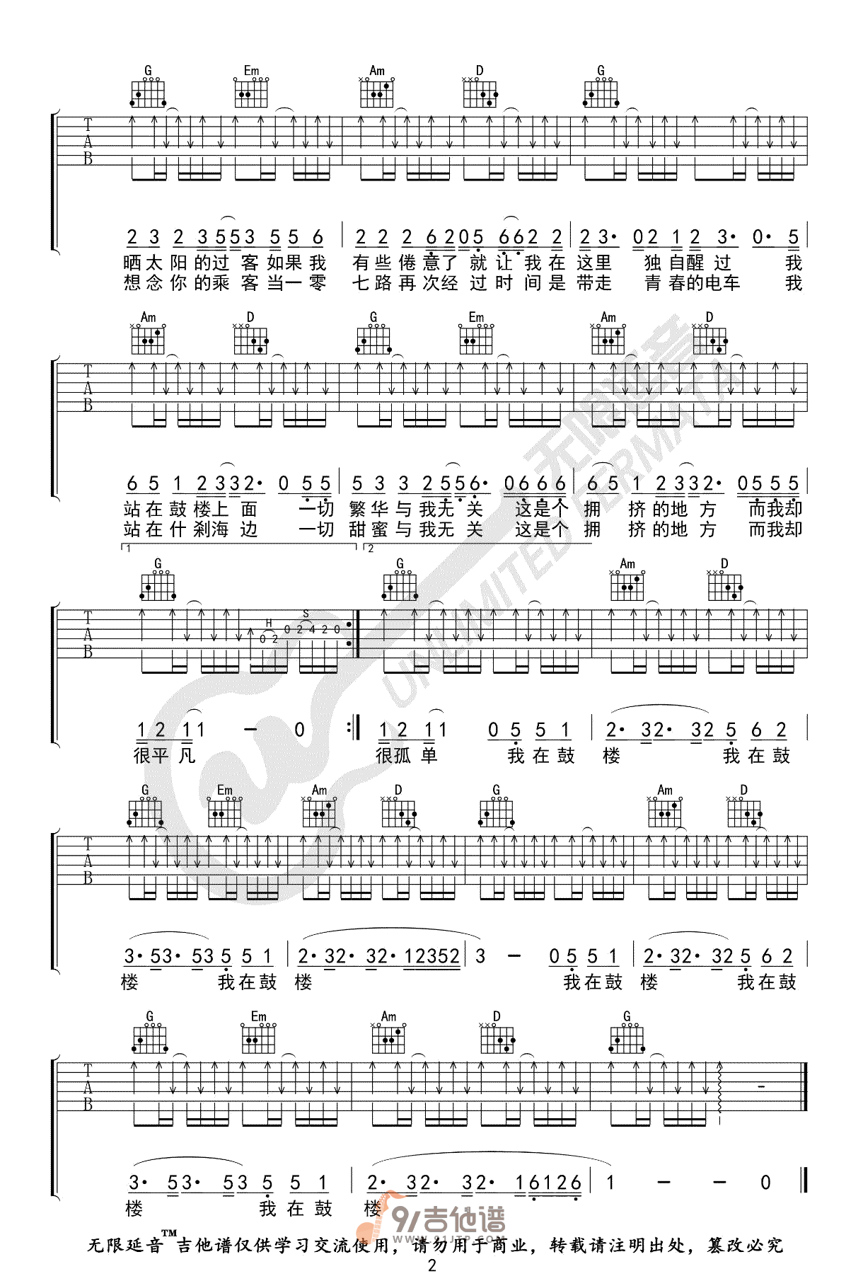当前位置:琴谱网>吉他弹唱>鼓楼