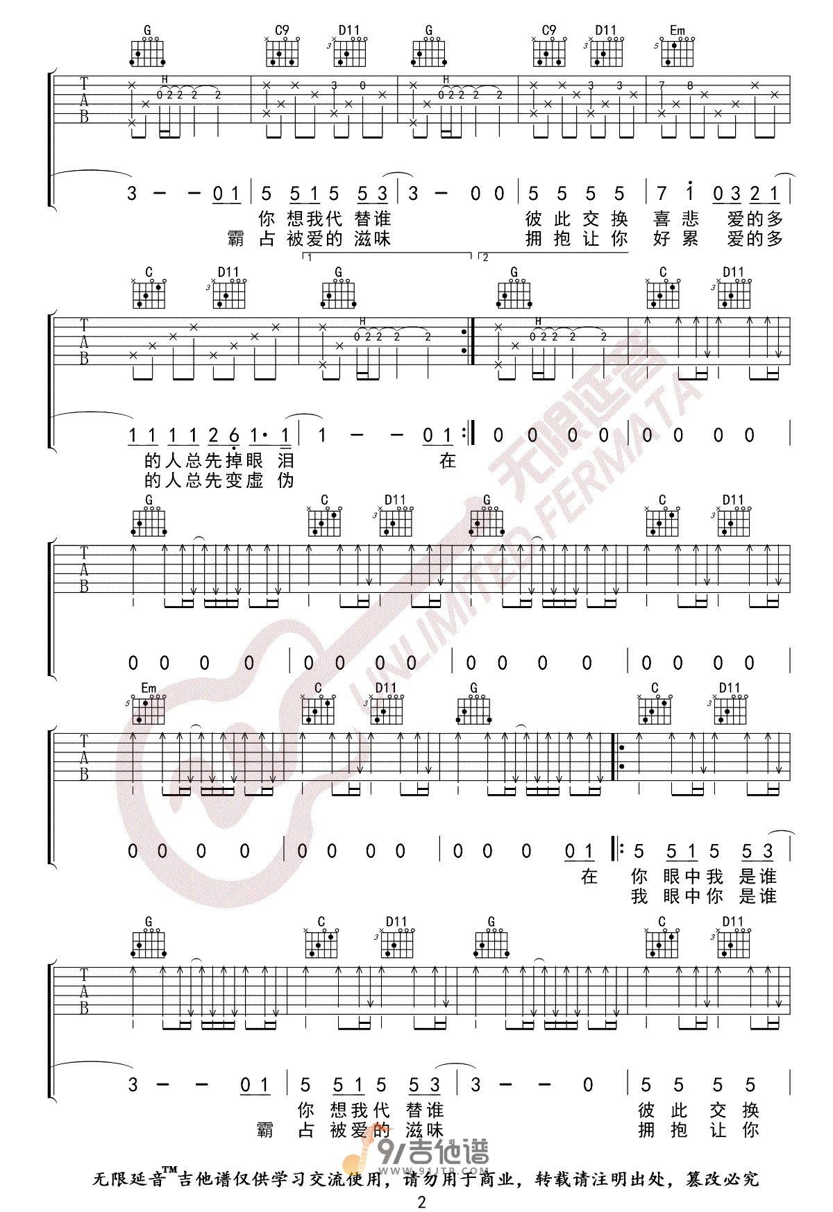 谁吉他谱 - 廖俊涛 - G调吉他弹唱谱 - 原版