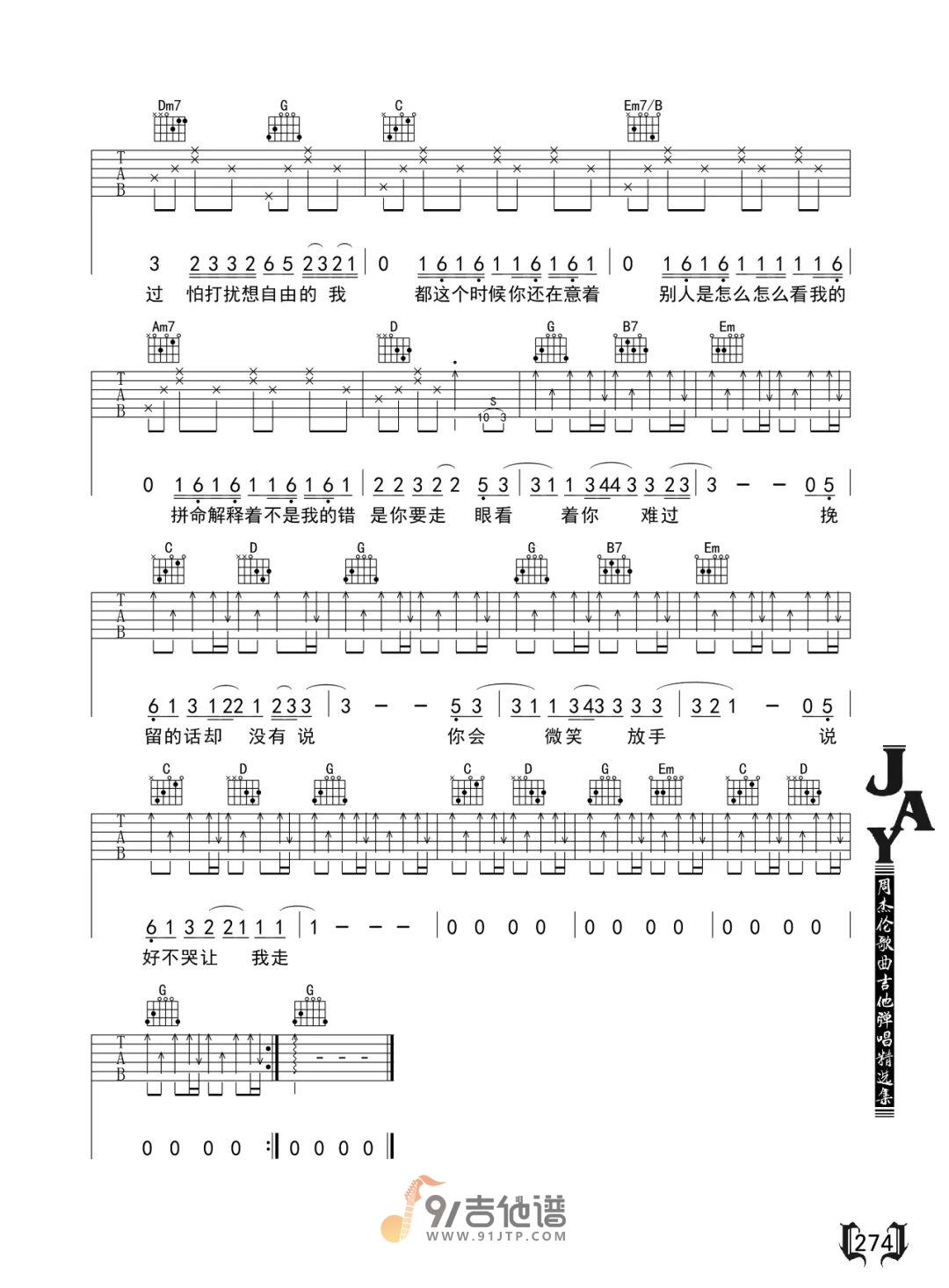 说好不哭吉他谱 - 周杰伦 - G调吉他弹唱谱 - 原版