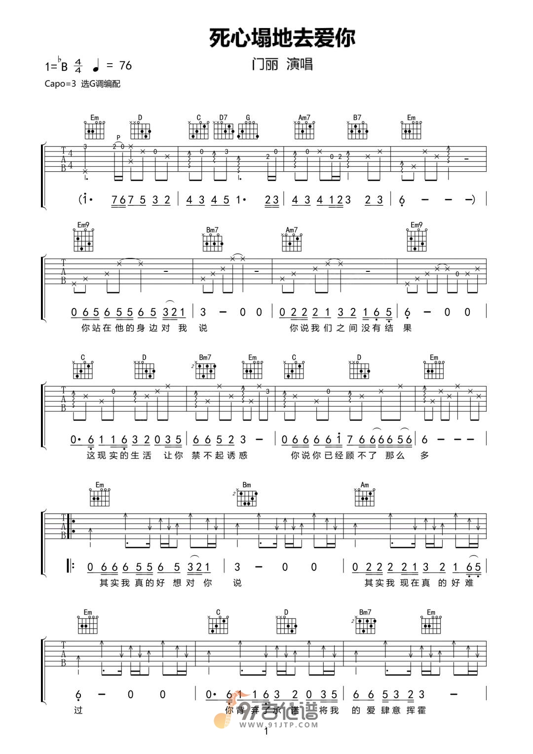 死心塌地去爱你吉他谱 - 门丽 - G调吉他弹唱谱 - 原版