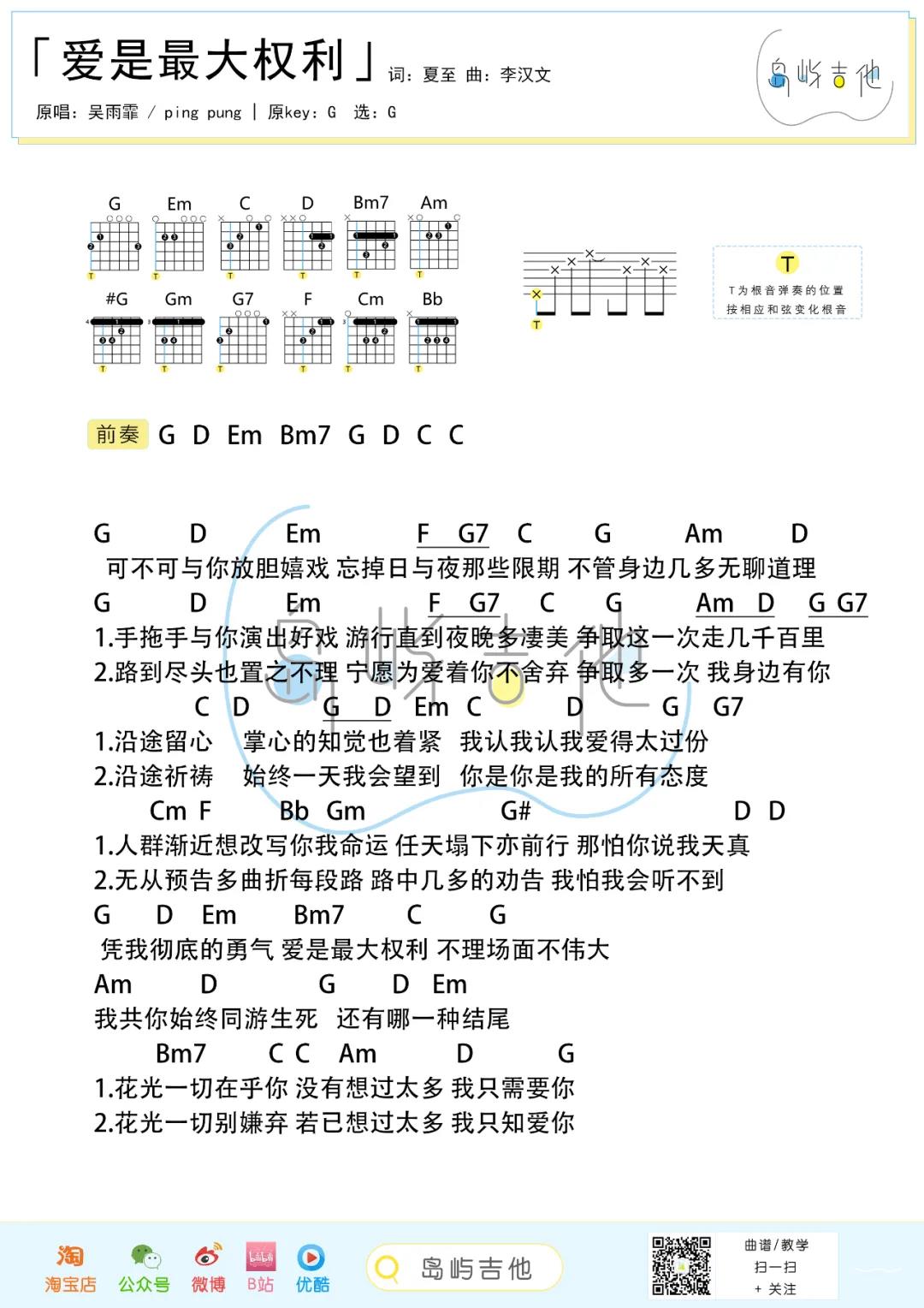 当前位置:琴谱网>吉他弹唱>爱是最大权利