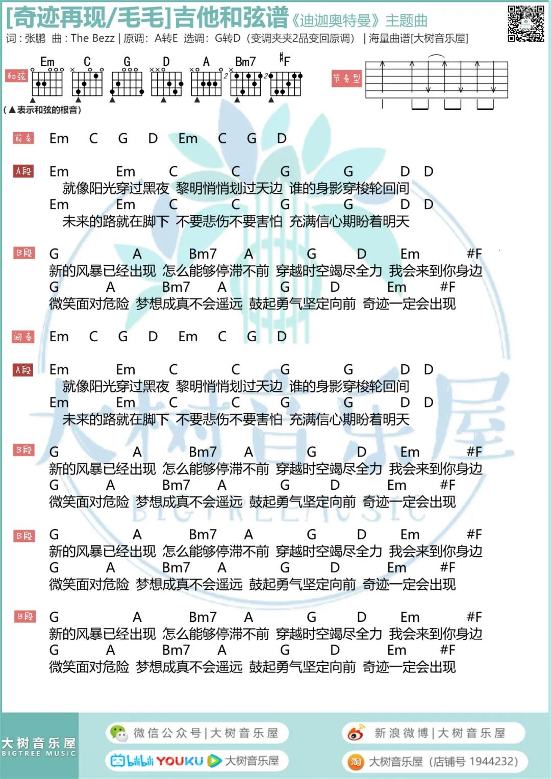 奇迹再现吉他谱 - 毛毛 - G调吉他弹唱谱