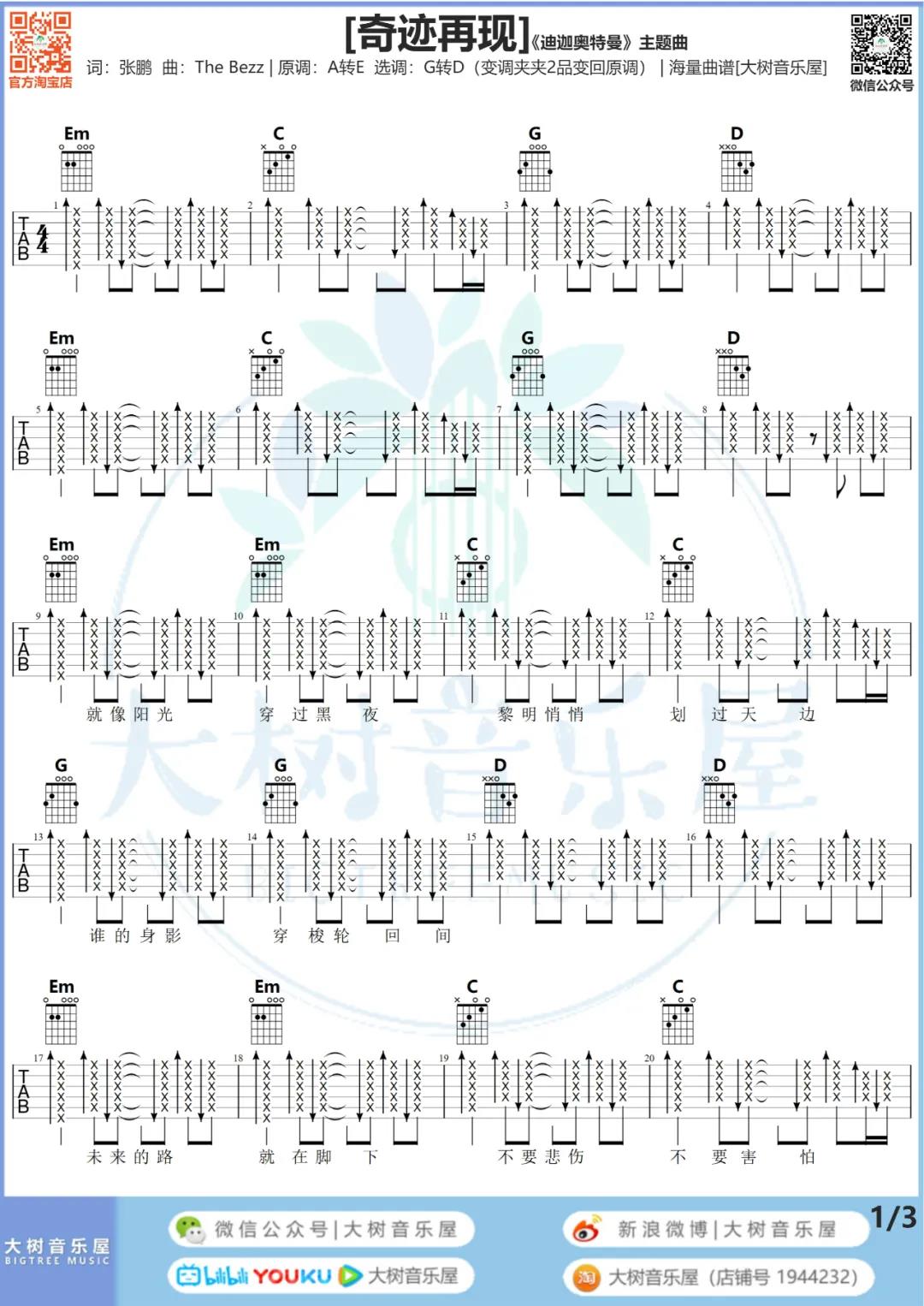 当前位置:琴谱网>吉他弹唱>奇迹再现