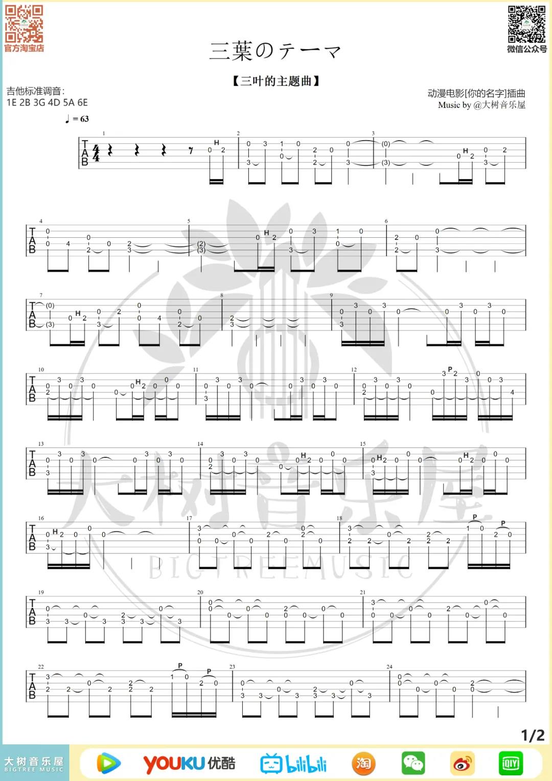 三叶的主题曲()吉他谱 - 游戏动漫 - G调吉他独奏谱