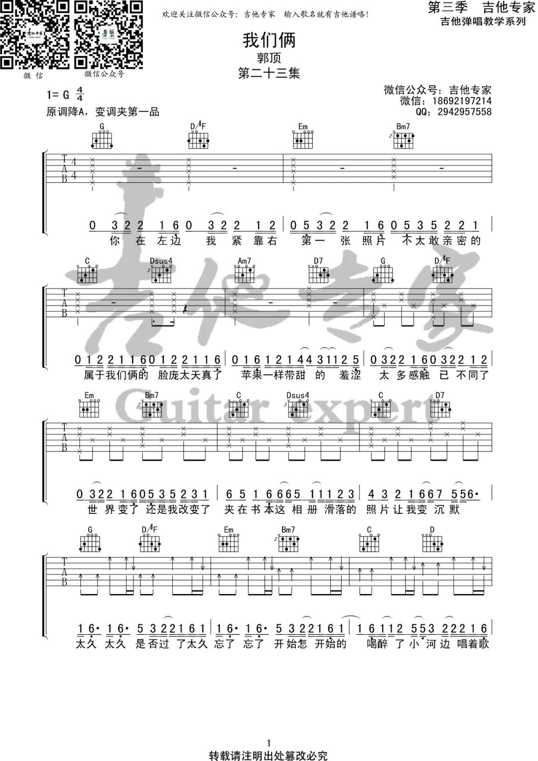 我们俩吉他谱 - 郭顶 - G调吉他弹唱谱