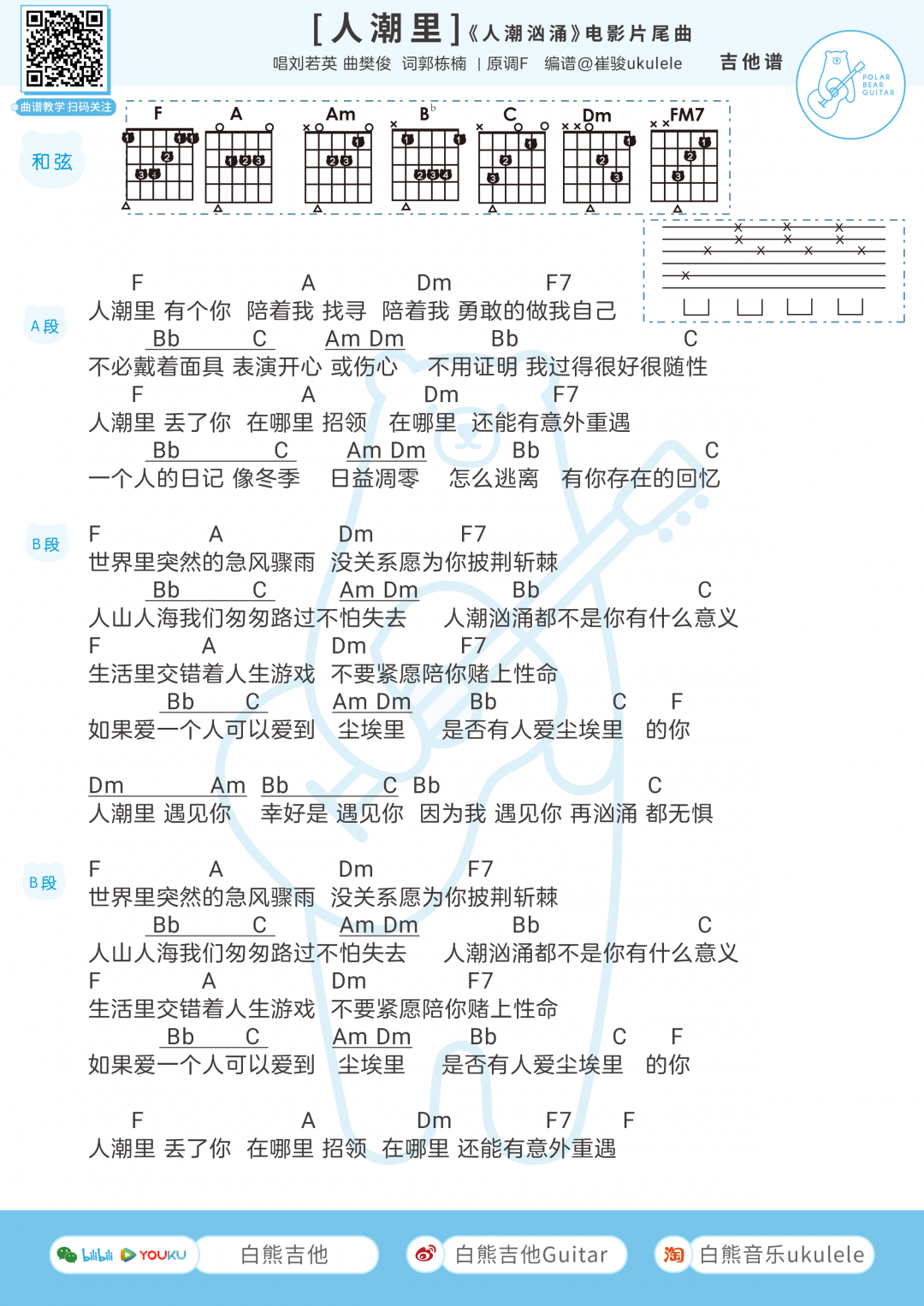 人潮里吉他谱 - 刘若英 - F调吉他弹唱谱
