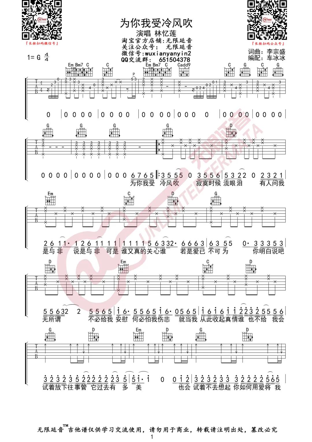 当前位置:琴谱网>吉他弹唱>为你我受冷风吹
