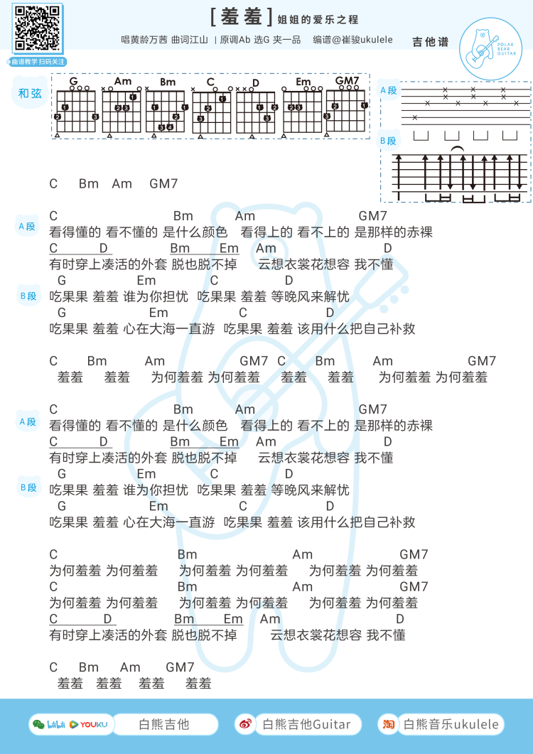 羞羞吉他谱 - 黄龄,万茜 - G调吉他弹唱谱