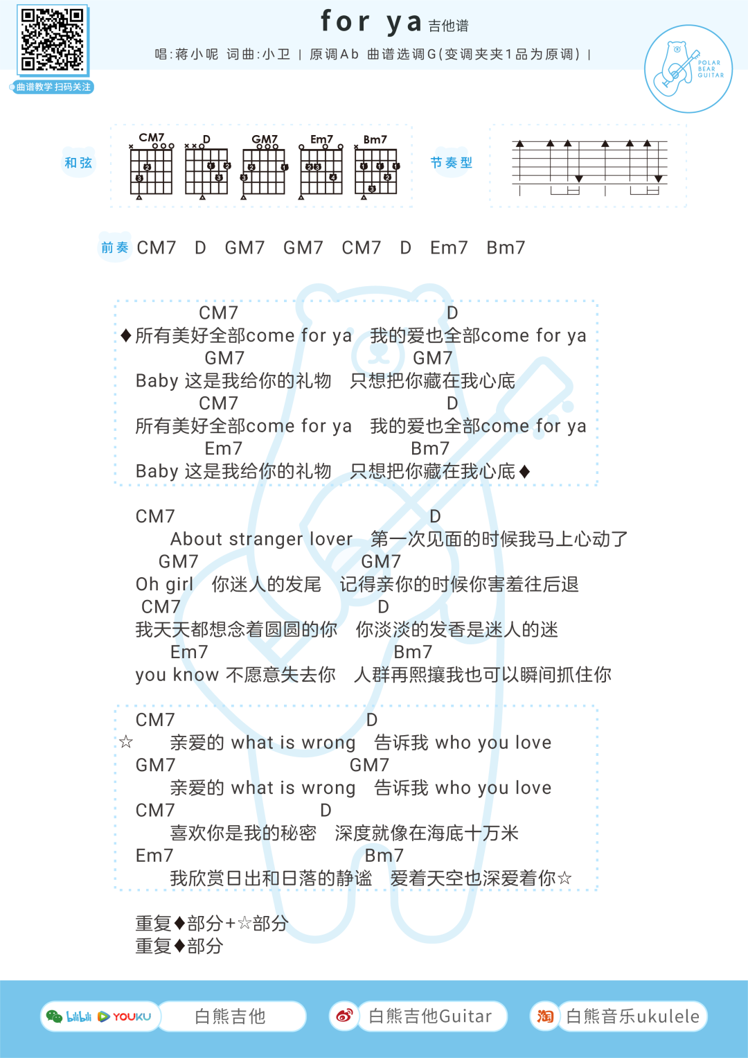 for ya吉他谱 - 蒋小呢 - G调吉他弹唱谱