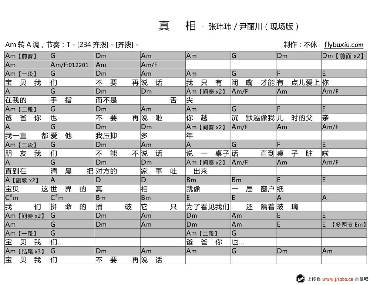 真相吉他谱 - 张玮玮 - 吉他弹唱谱 - 和弦谱