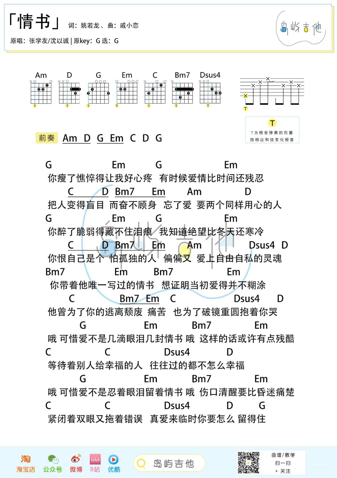 情书吉他谱 - 沈以诚 - G调吉他弹唱谱