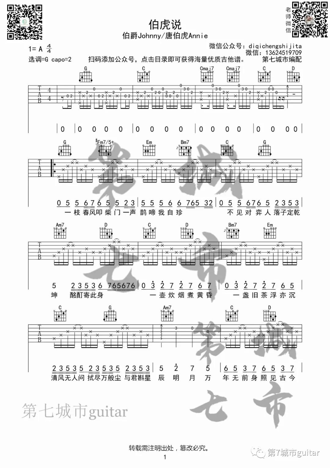 伯虎说吉他谱 - 伯爵,唐伯虎 - G调吉他弹唱谱