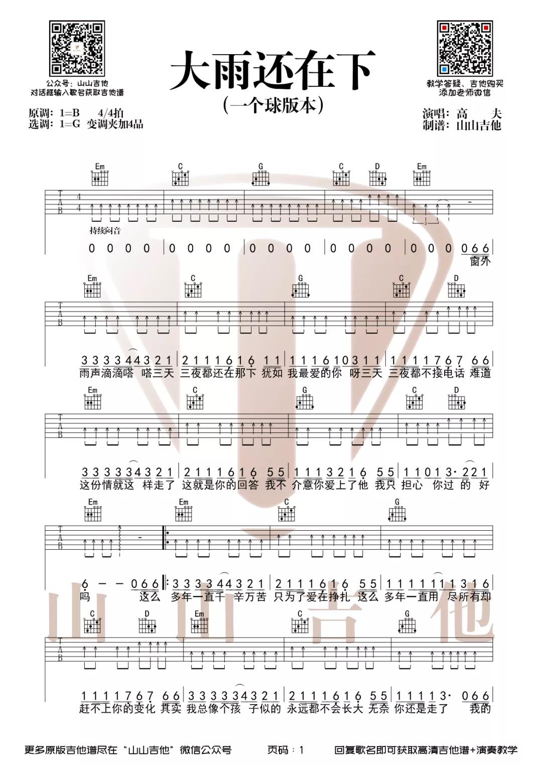 大雨还在下吉他谱 - 高夫 - G调吉他弹唱谱