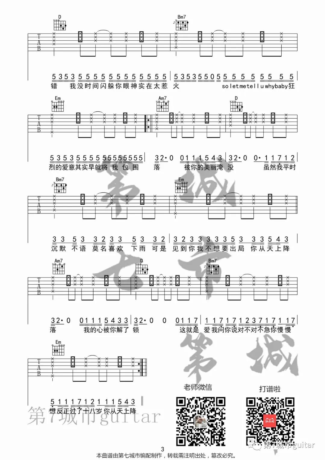 曲谱介绍: 胡期皓,叶琼琳,董唧唧《完美降落》吉他弹唱谱,采用G调指法编配,共有3张高清图谱。