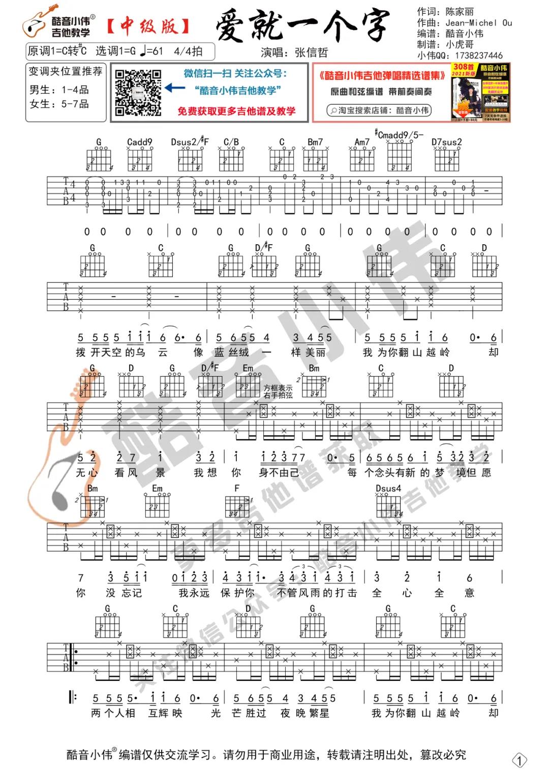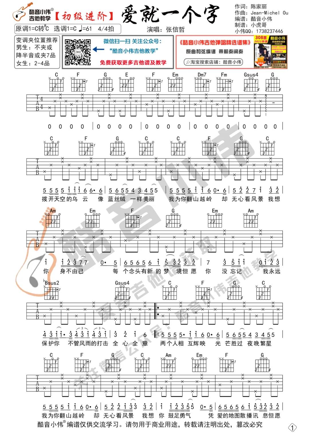 当前位置:琴谱网>吉他弹唱>爱就一个字