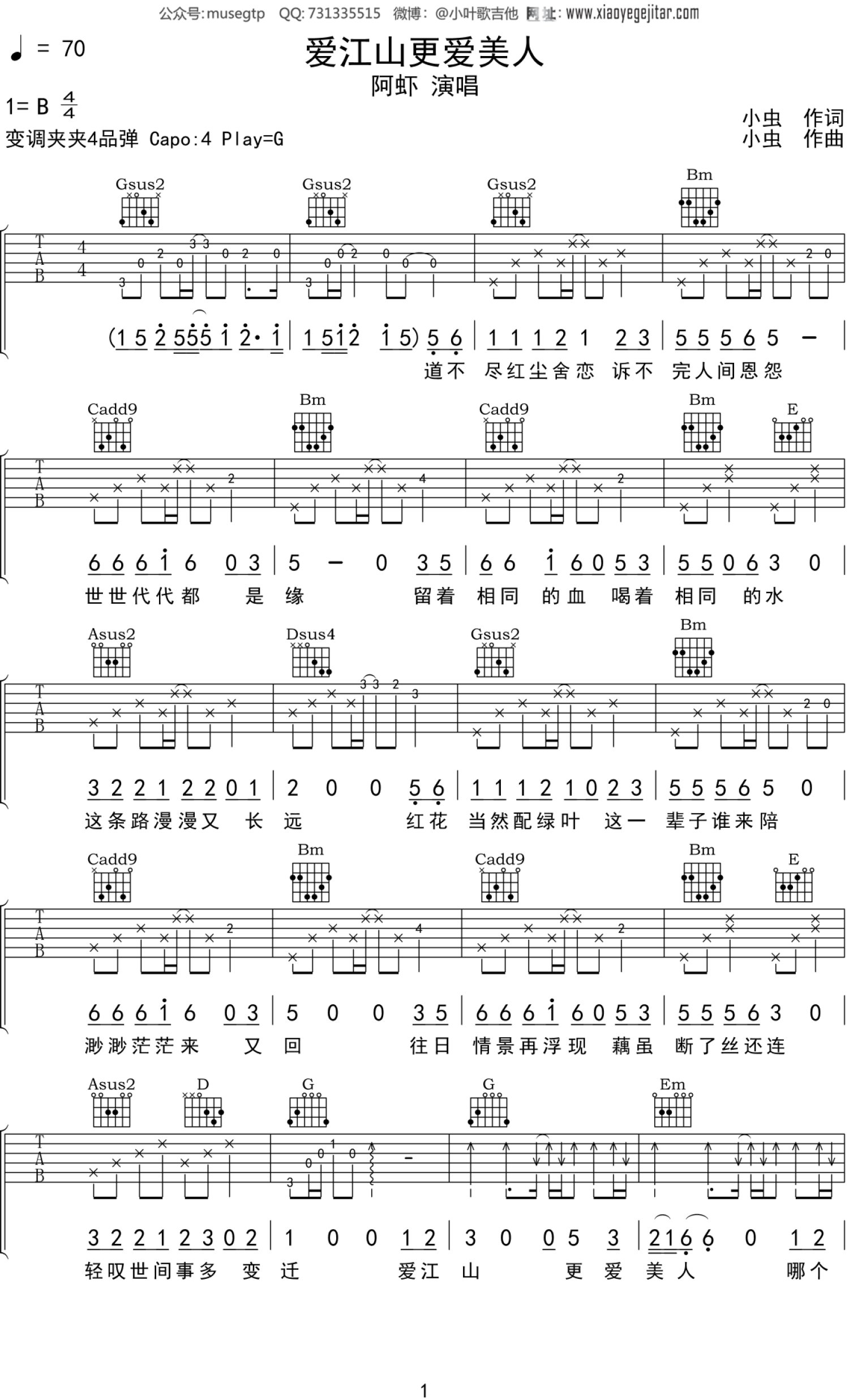 曲谱介绍: 阿虾《爱江山更爱美人》吉他谱_G调吉他弹唱谱