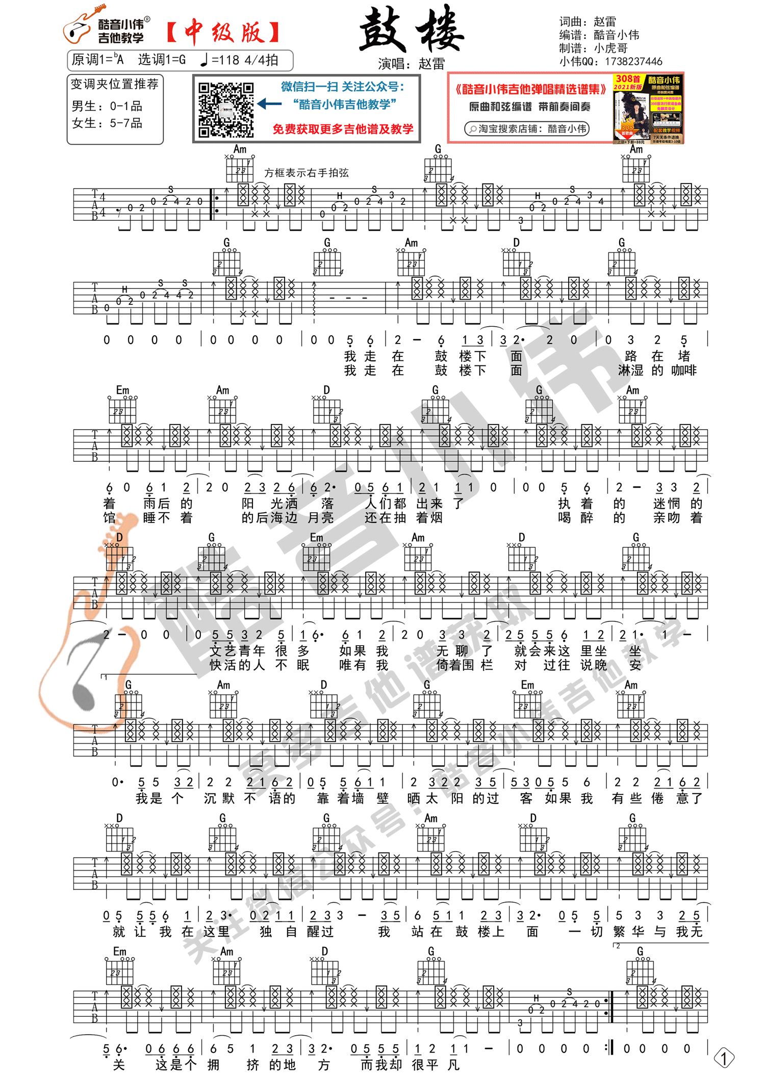 鼓楼吉他谱 - 赵雷 - G调吉他弹唱谱