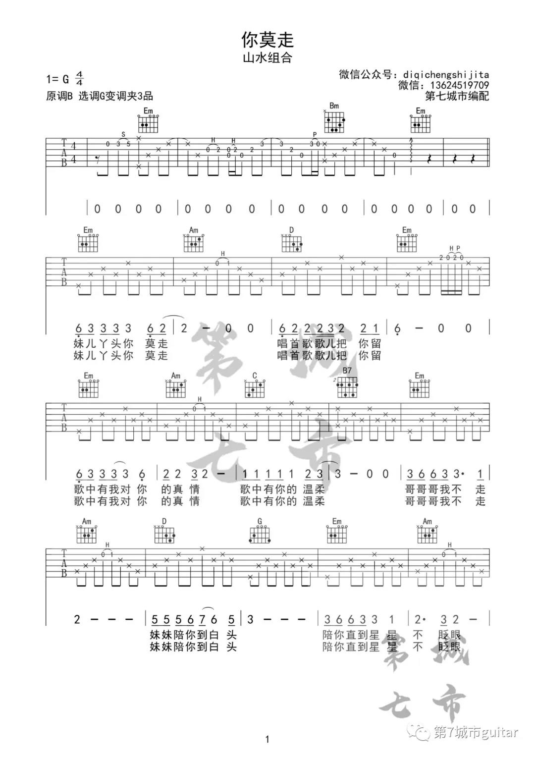 你莫走吉他谱 - 山水组合 - G调吉他弹唱谱