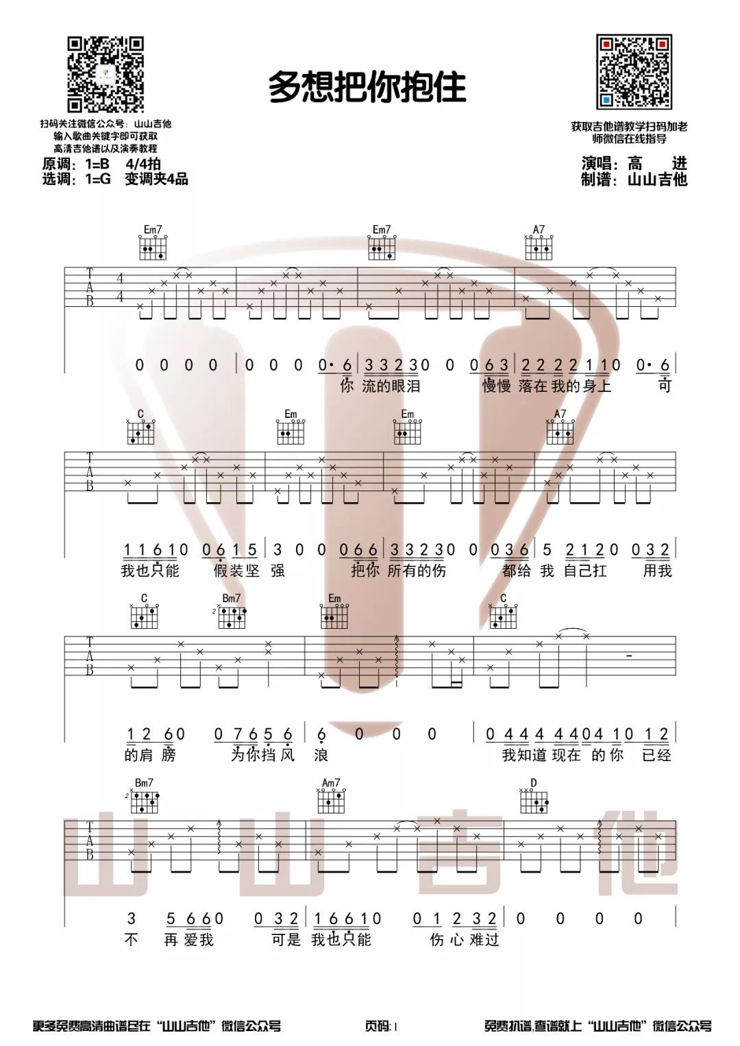 多想把你抱住吉他谱 - 高进 - G调吉他弹唱谱