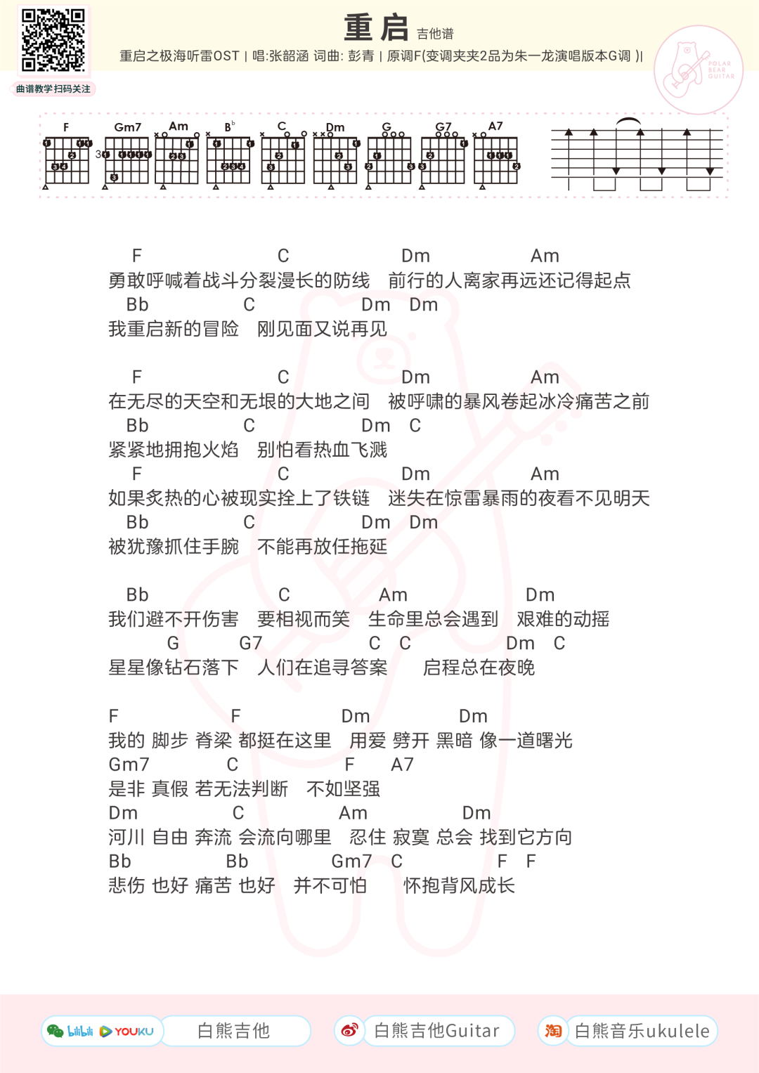 重启吉他谱 - 朱一龙,张韶涵 - G调吉他弹唱谱