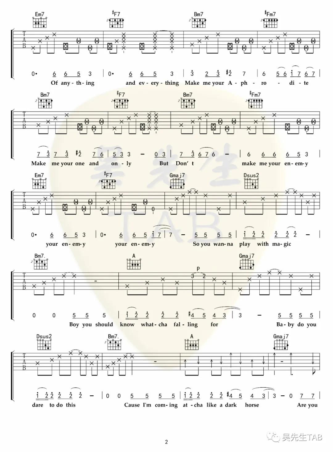 当前位置:琴谱网>吉他弹唱>Dark Horse (抖音转音版)