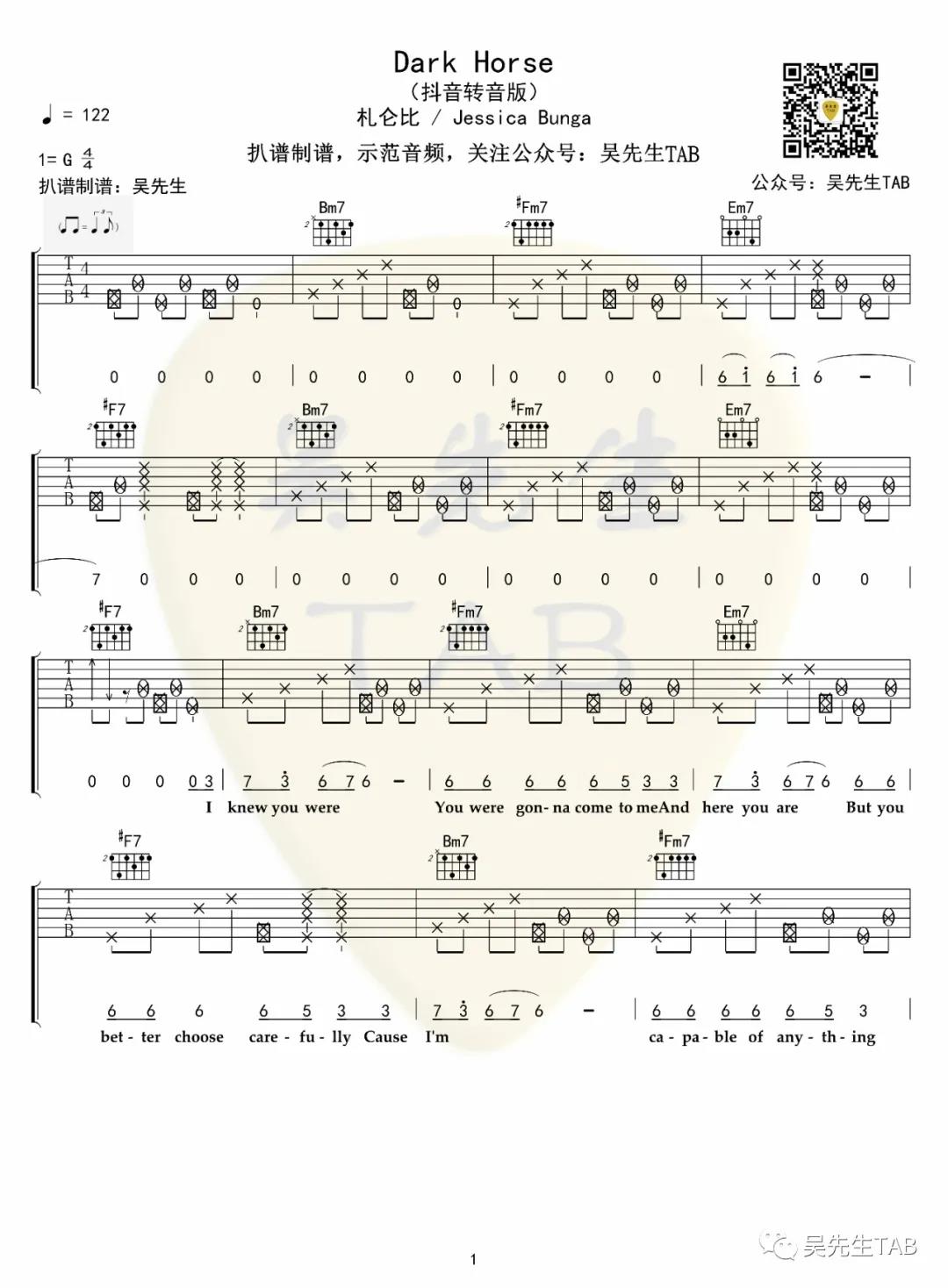 Dark Horse (抖音转音版)吉他谱 - katy,perry - G调吉他弹唱谱