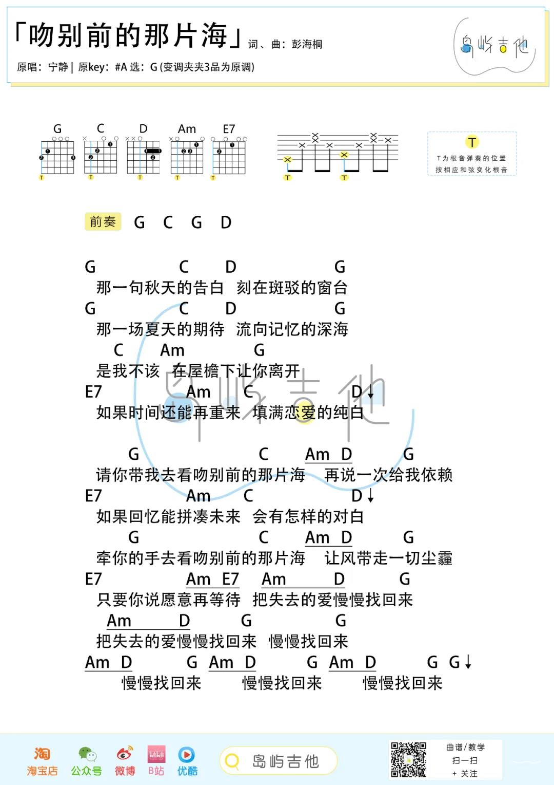 吻别前的那片海吉他谱 - 宁静 - G调吉他弹唱谱
