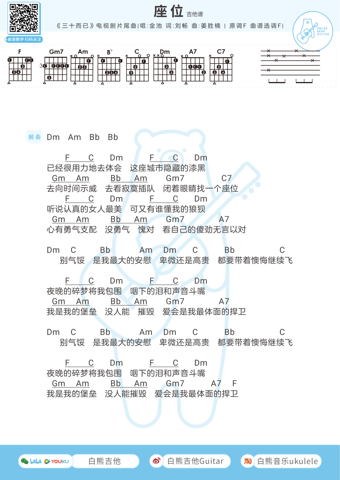 座位吉他谱 - 金池 - F调吉他弹唱谱