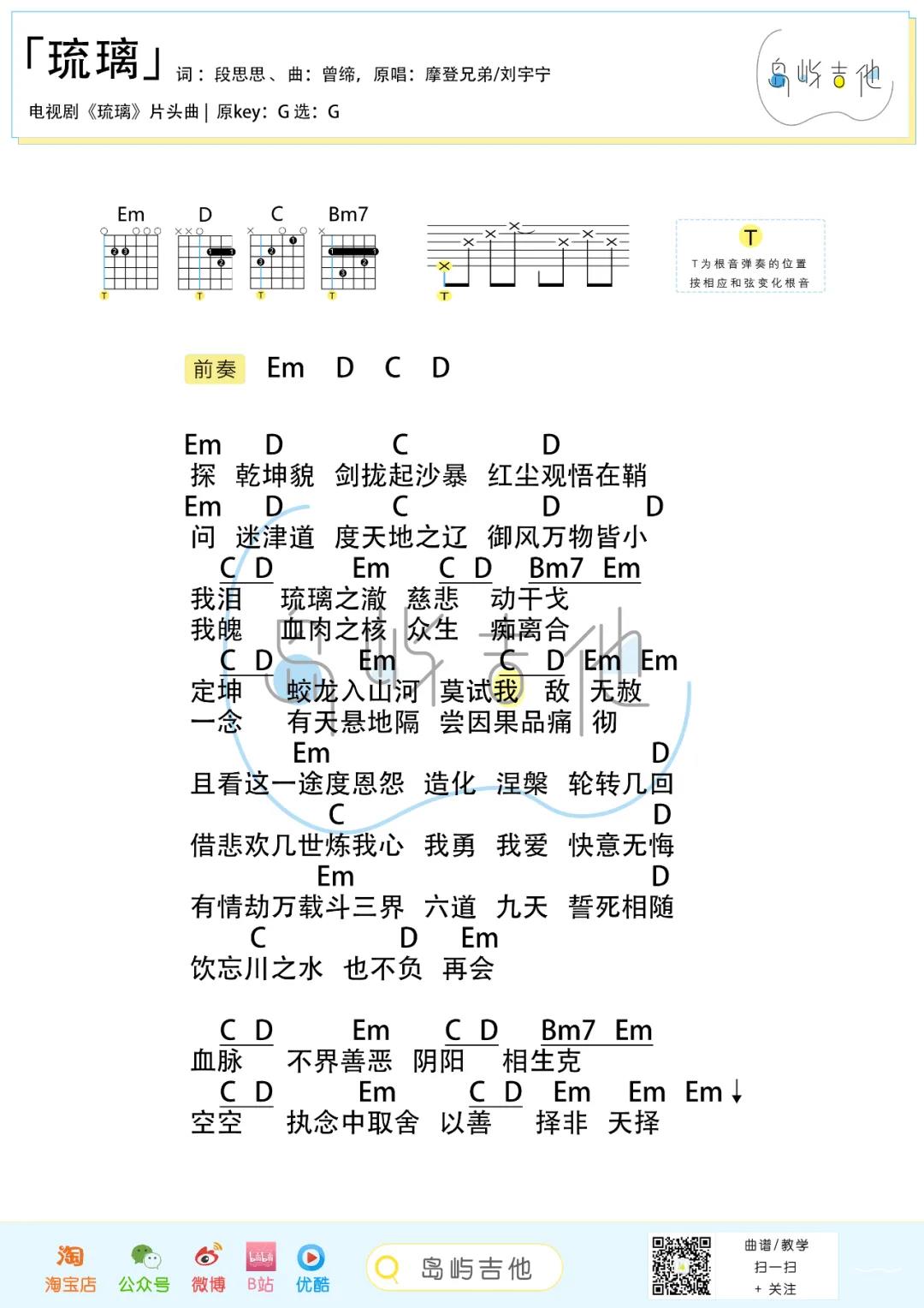 琉璃吉他谱 - 刘宇宁 - G调吉他弹唱谱