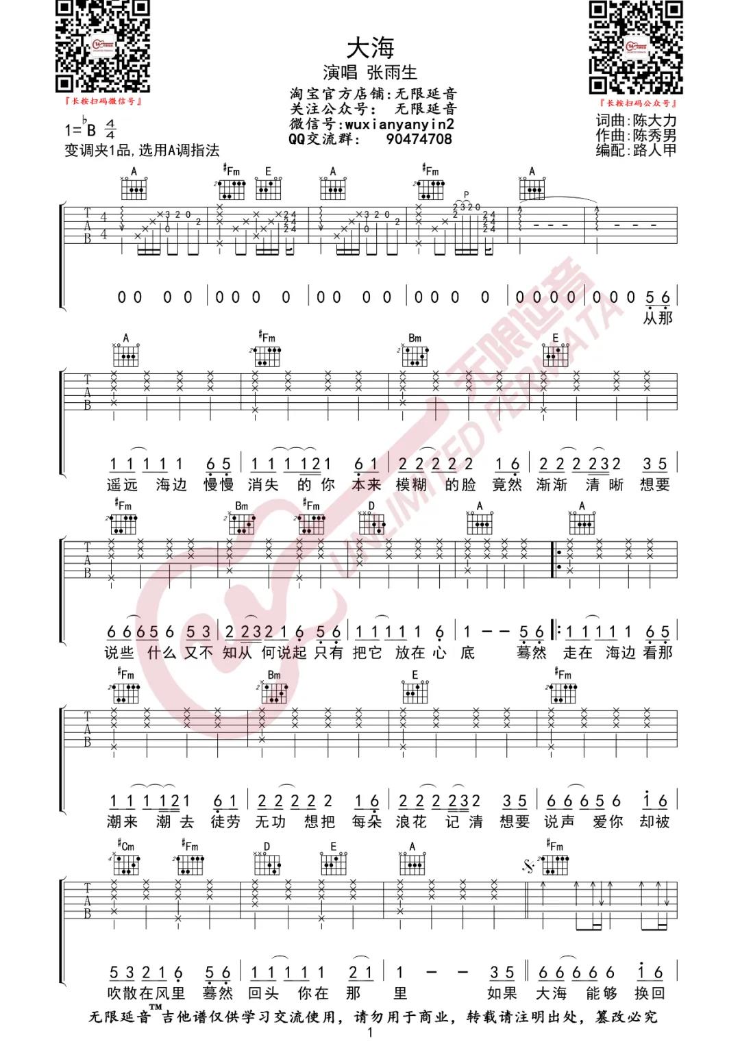 当前位置:琴谱网>吉他弹唱>大海