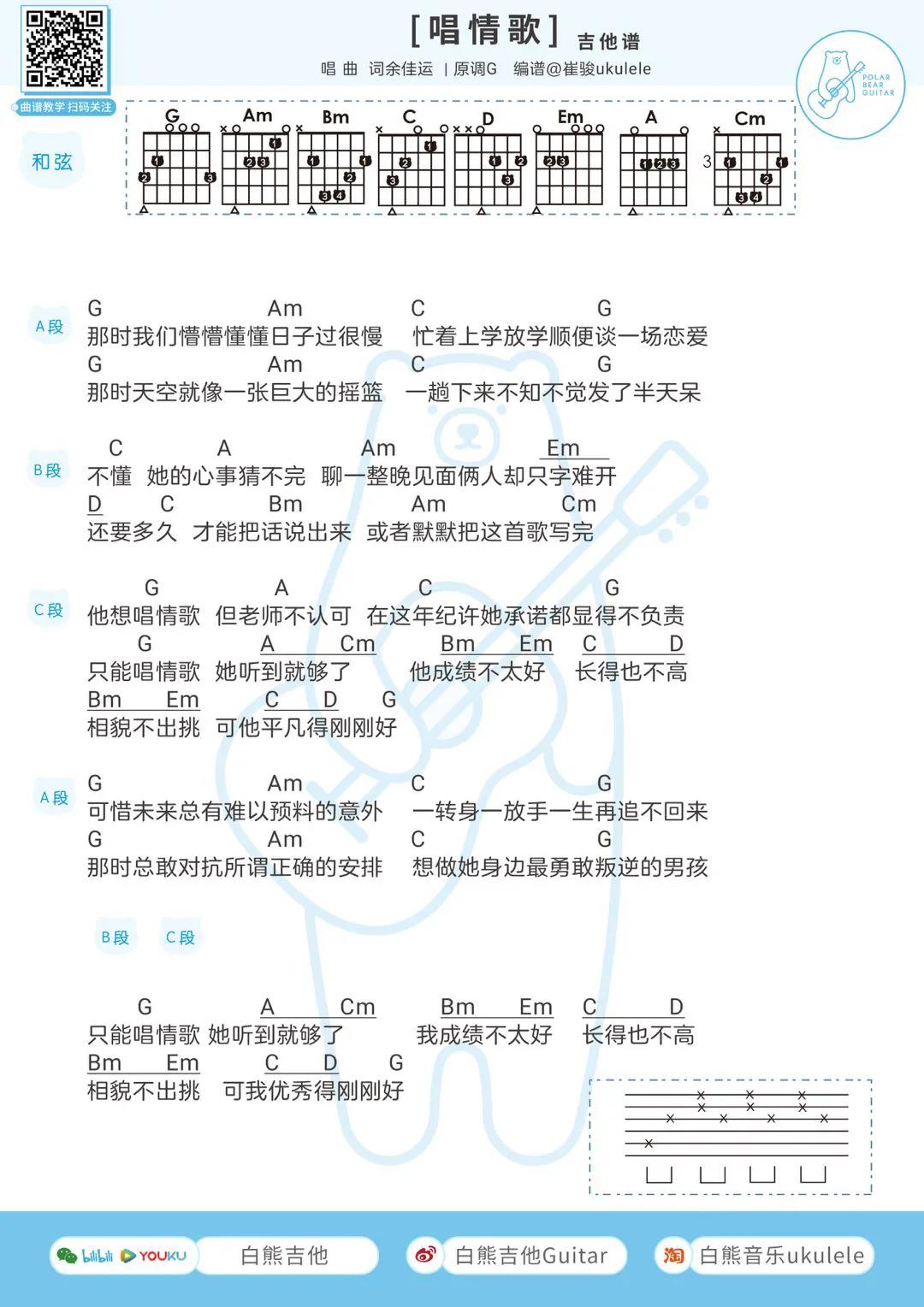 唱情歌吉他谱 - 余佳运 - G调吉他弹唱谱
