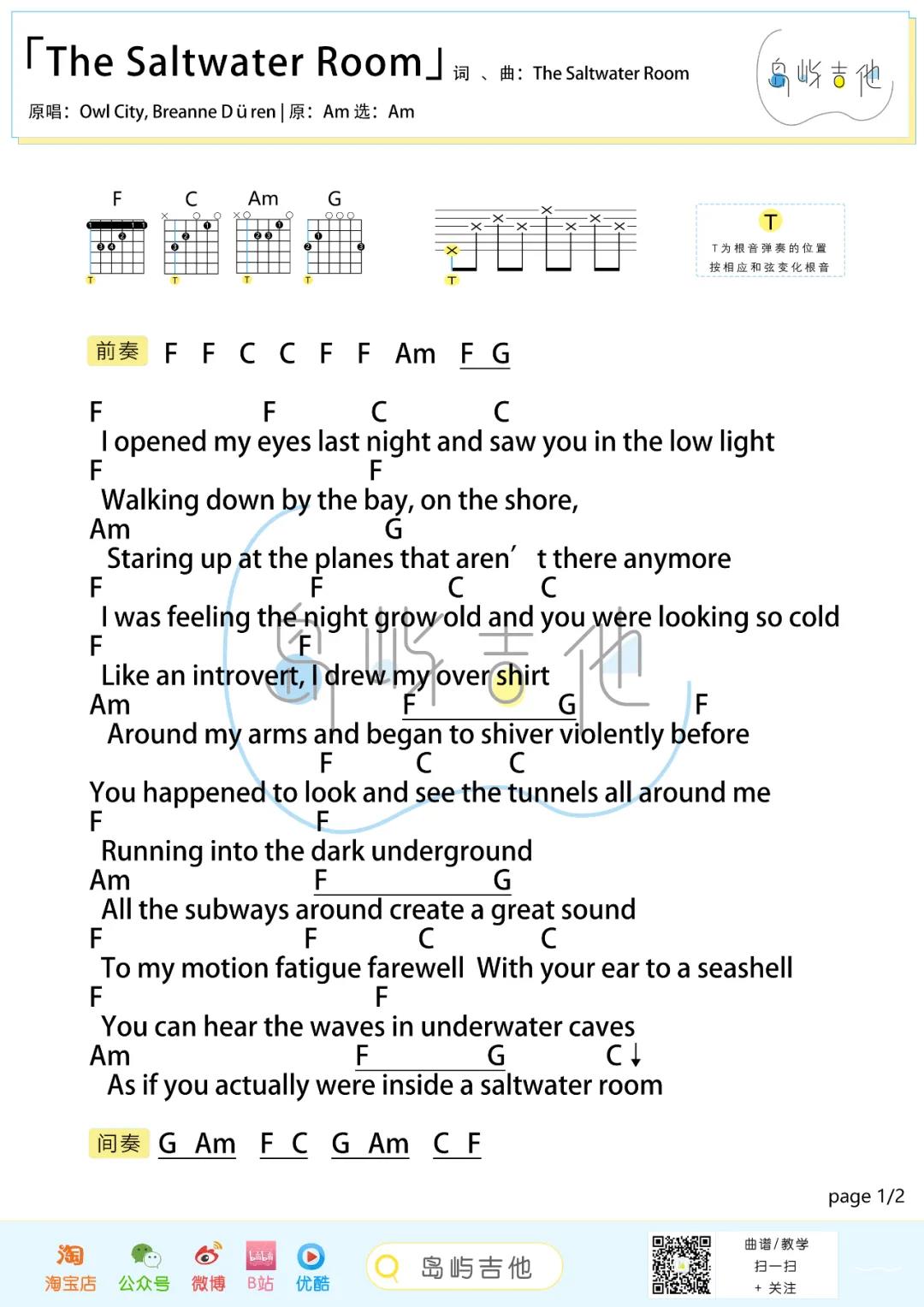 当前位置:琴谱网>吉他弹唱>The Saltwater Room