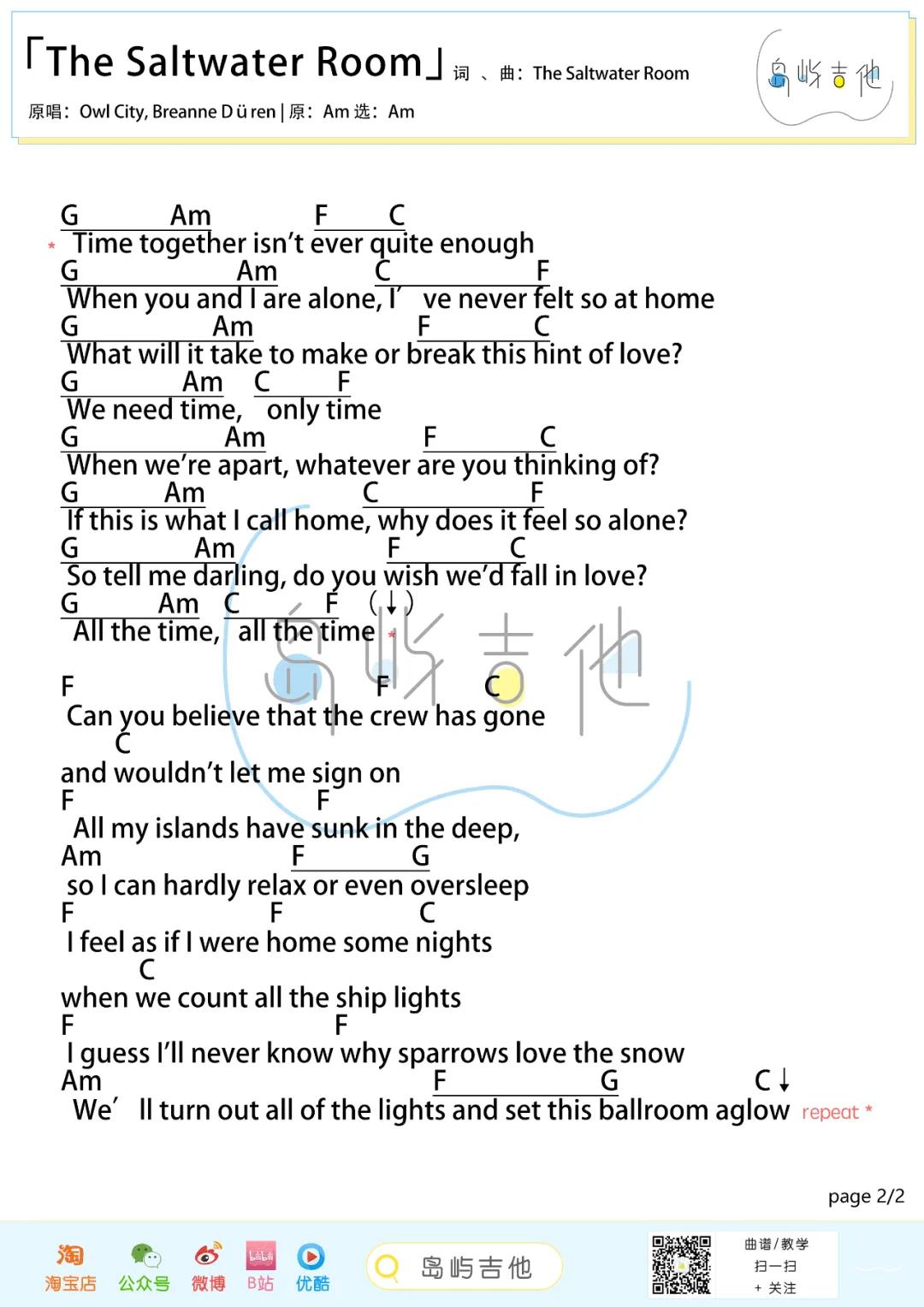 The Saltwater Room吉他谱 - Owl,City - A调吉他弹唱谱