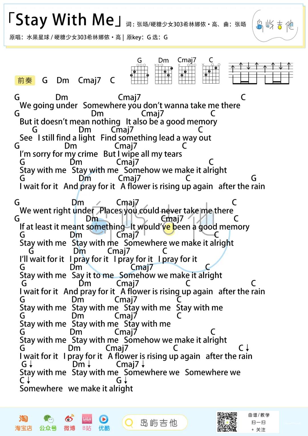 Stay With Me吉他谱 - 水果星球,希林娜依高 - G调吉他弹唱谱