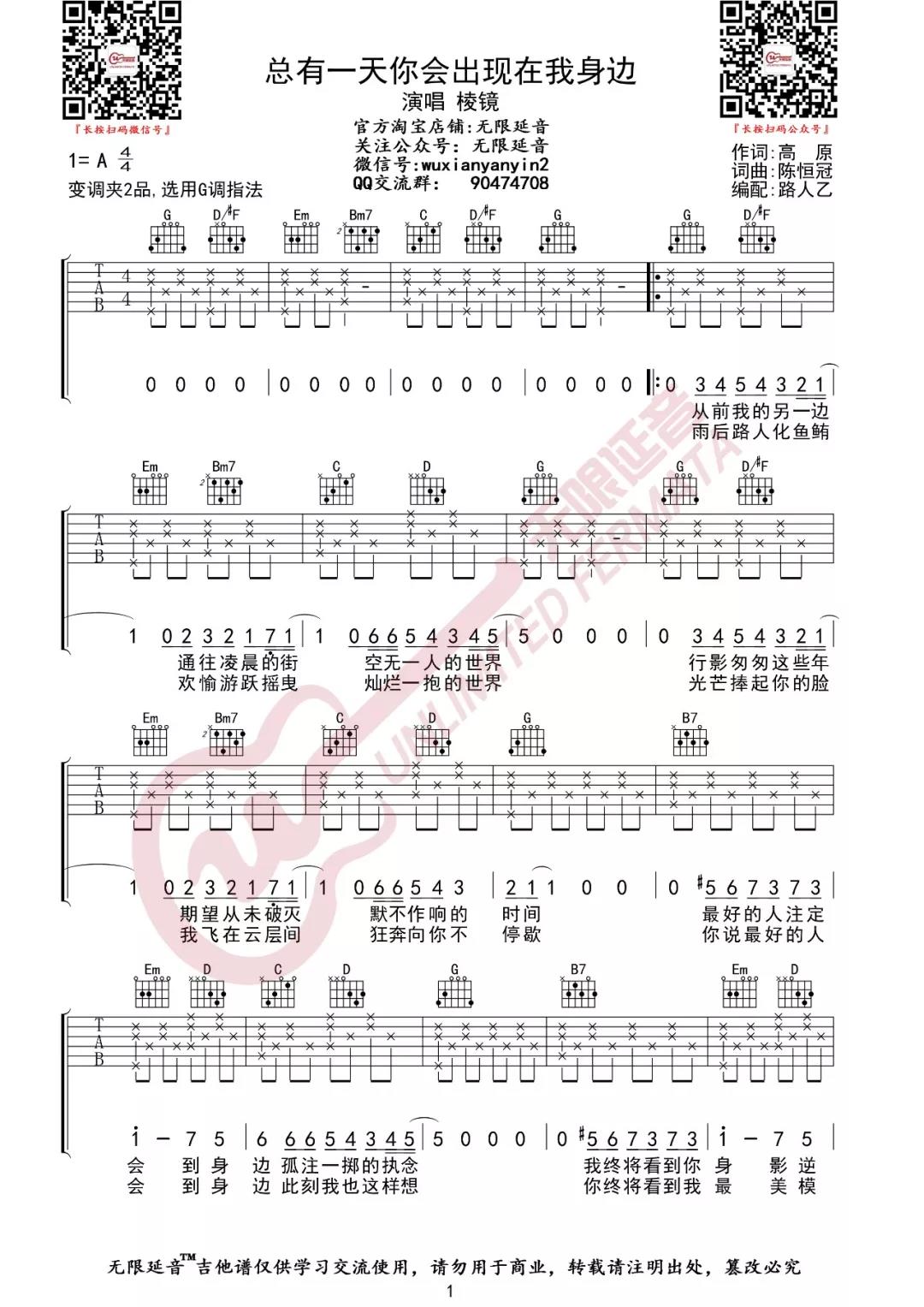 总有一天你会出现在我身边吉他谱 - 棱镜 - G调吉他弹唱谱