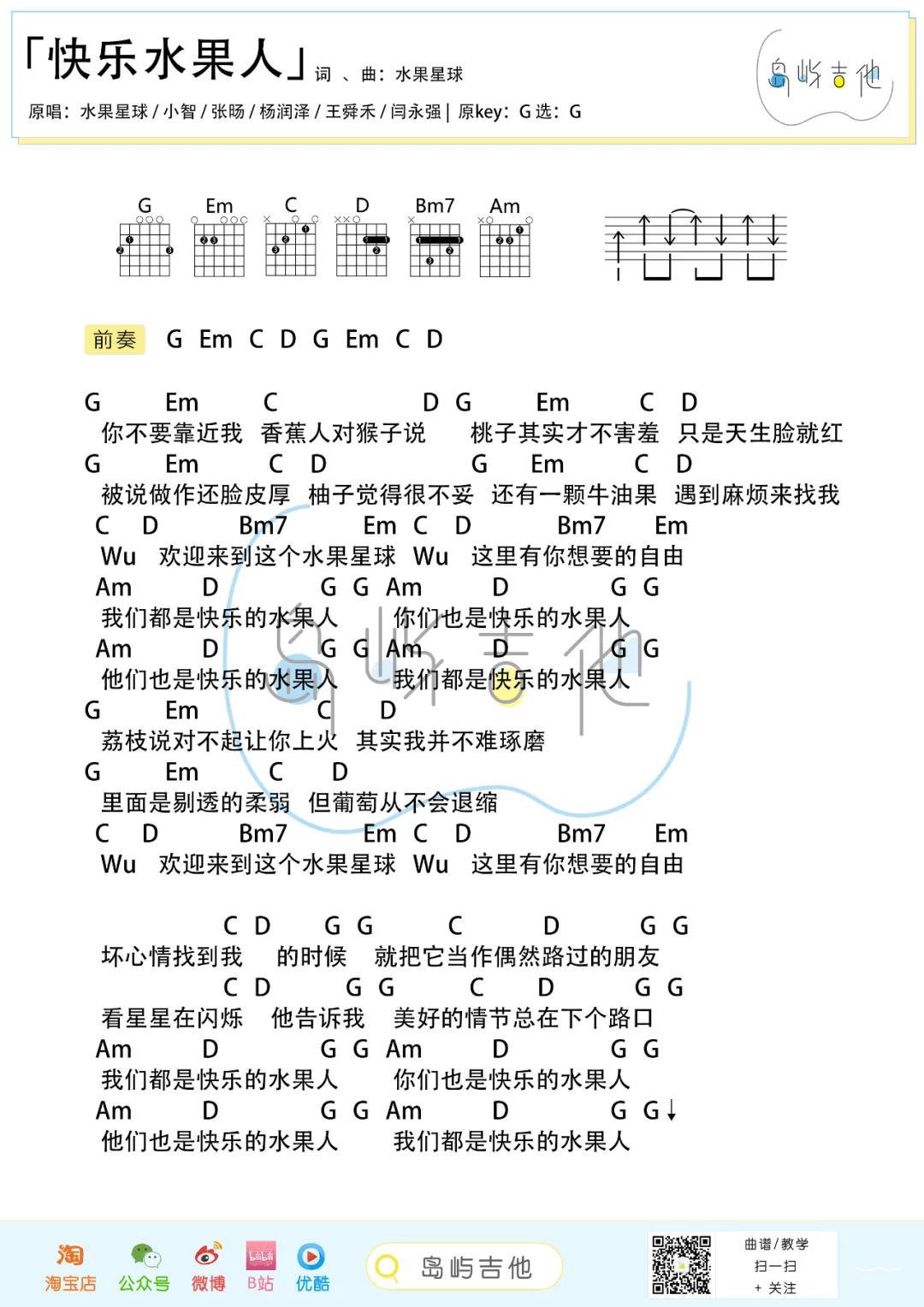 当前位置:琴谱网>吉他弹唱>快乐水果人