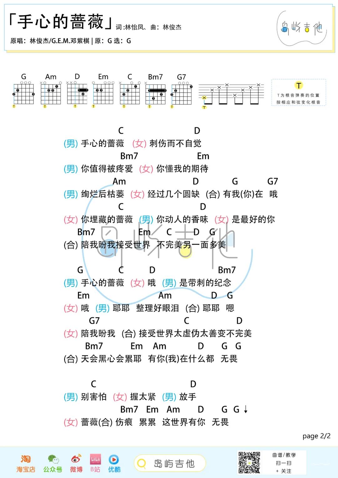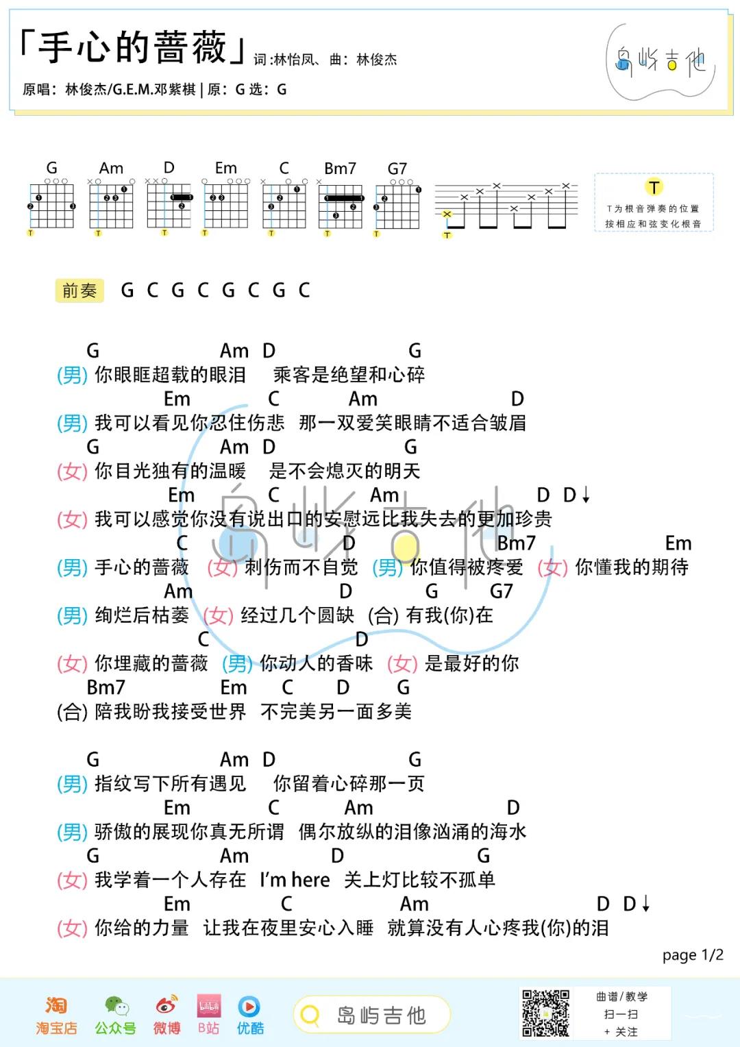 手心的蔷薇吉他谱 - 林俊杰,邓紫棋 - G调吉他弹唱谱