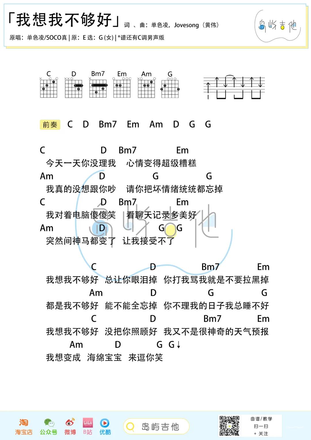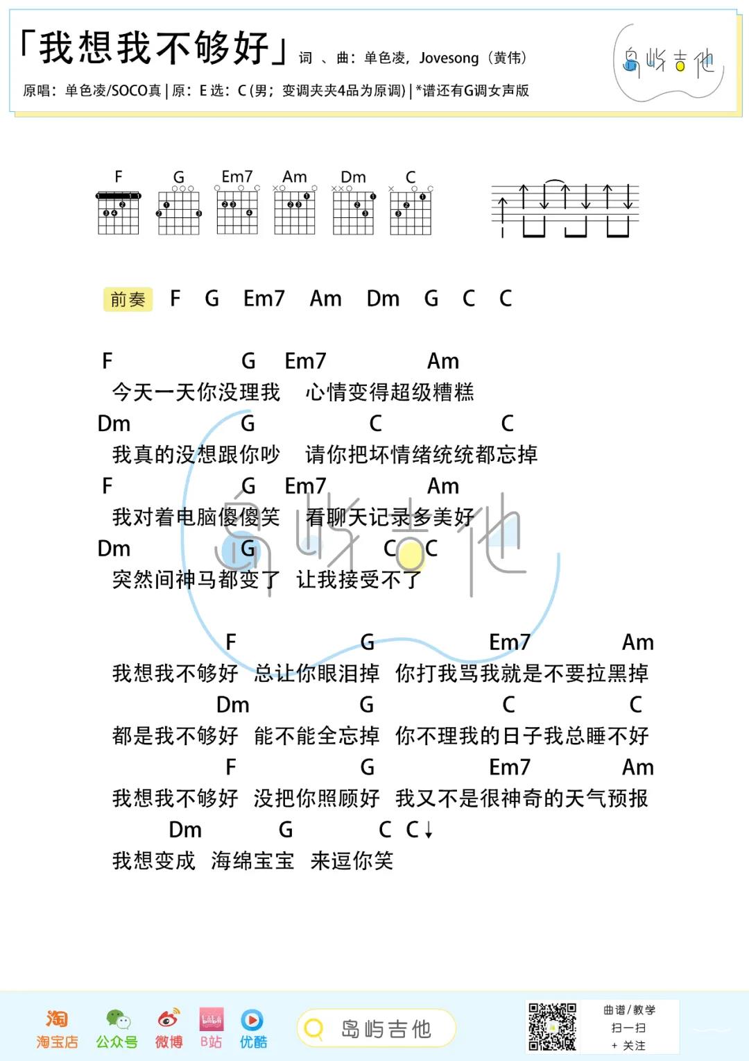 当前位置:琴谱网>吉他弹唱>我想我不够好