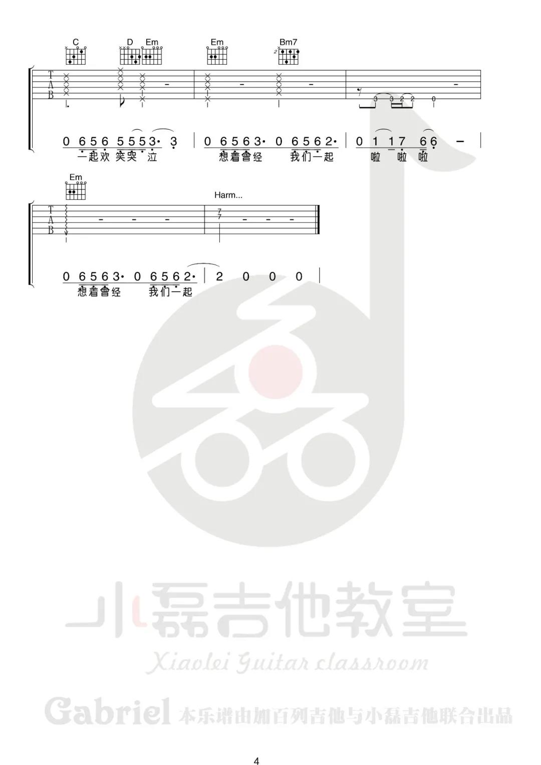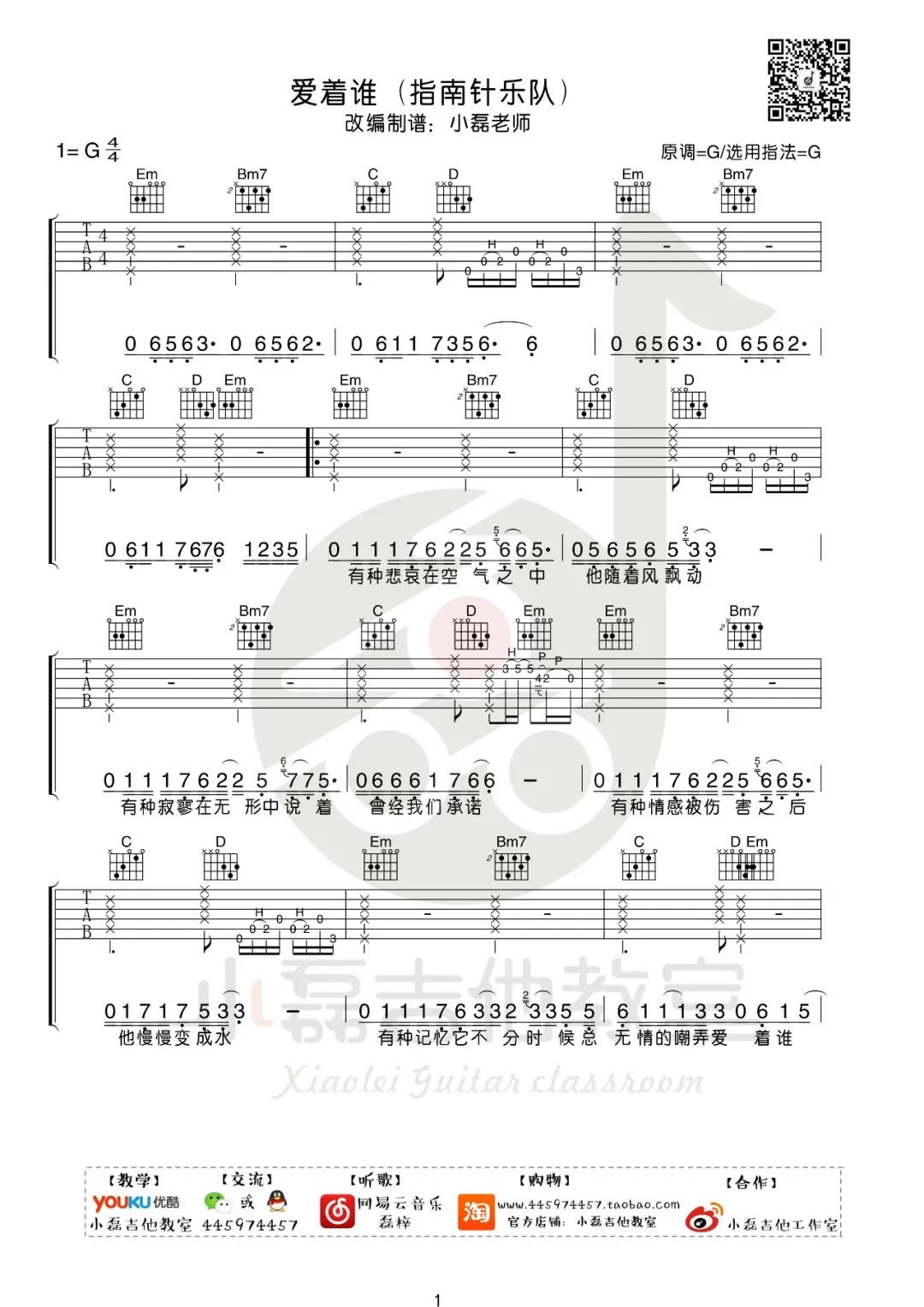 曲谱介绍: 指南针乐队《爱着谁》吉他弹唱谱,采用G调指法编配,共有4张高清图谱。