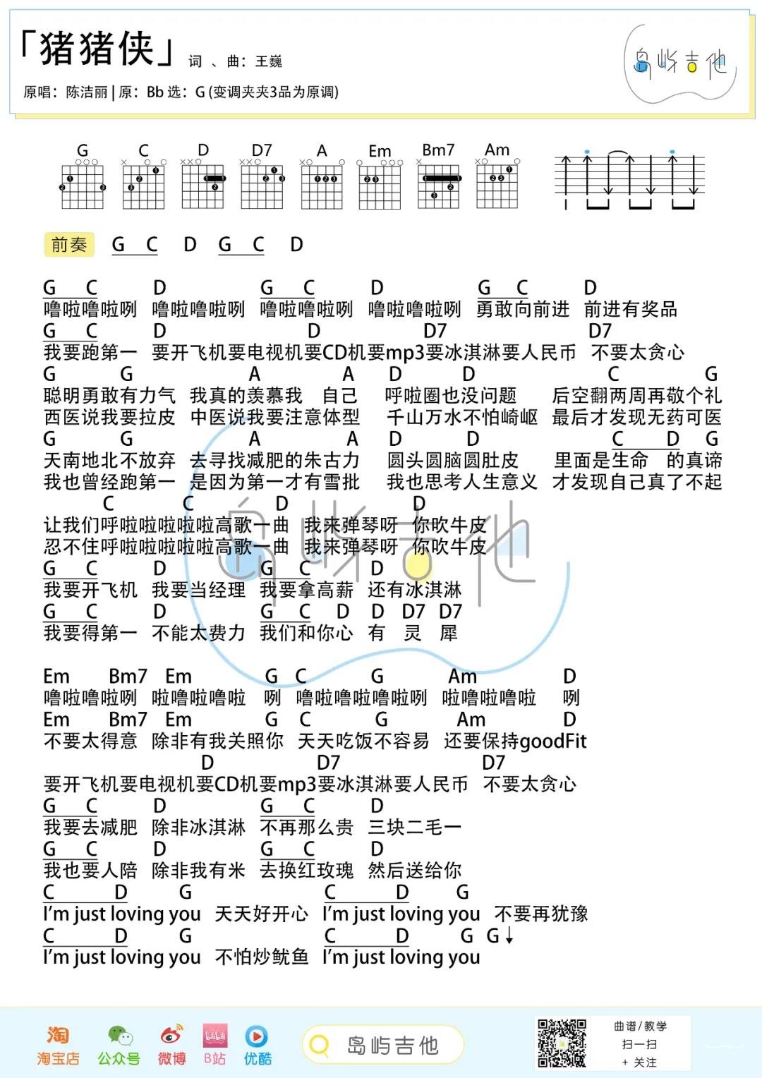 当前位置:琴谱网>吉他弹唱>猪猪侠