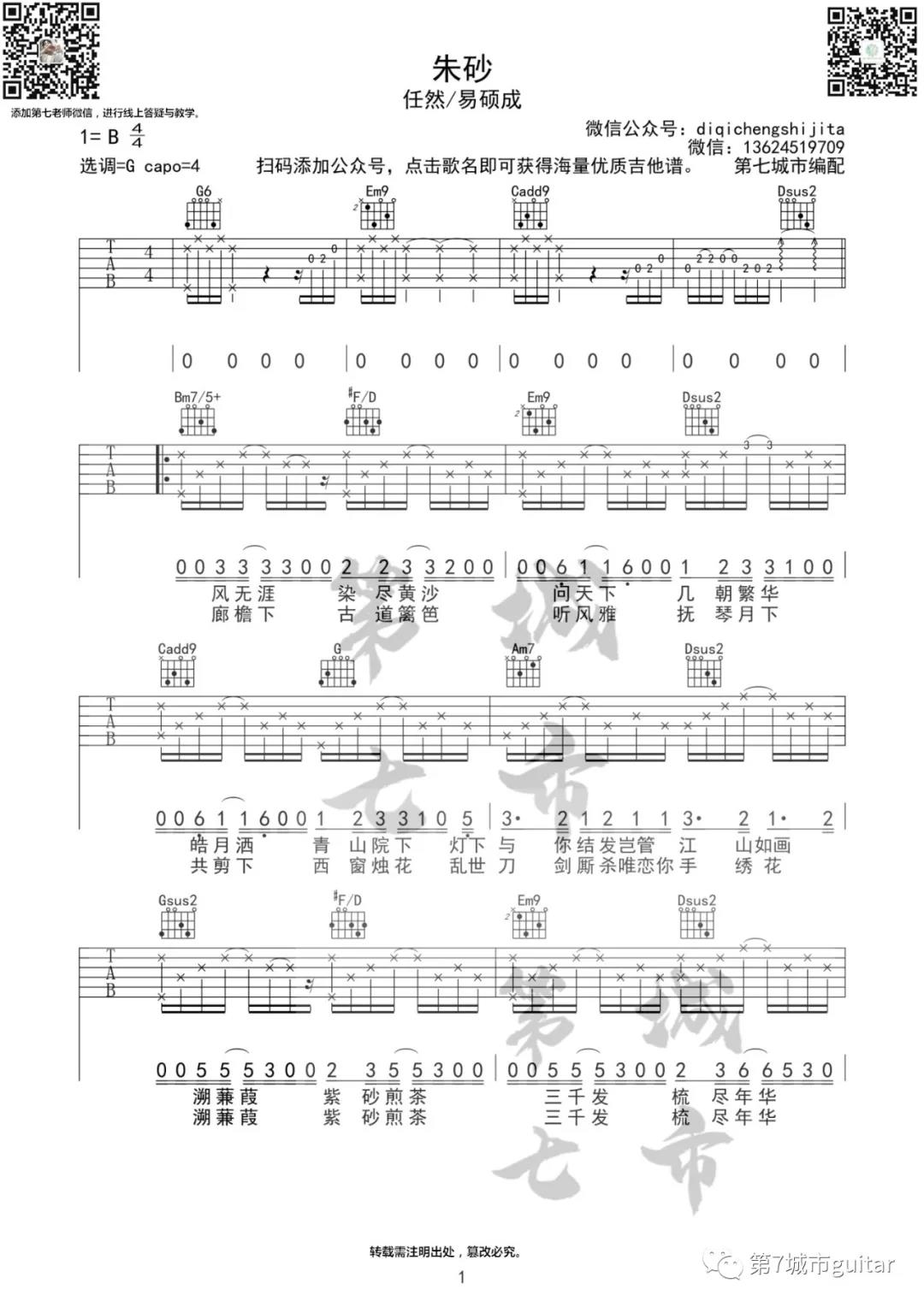 琴谱网为您精心推荐 朱砂 高清图谱
