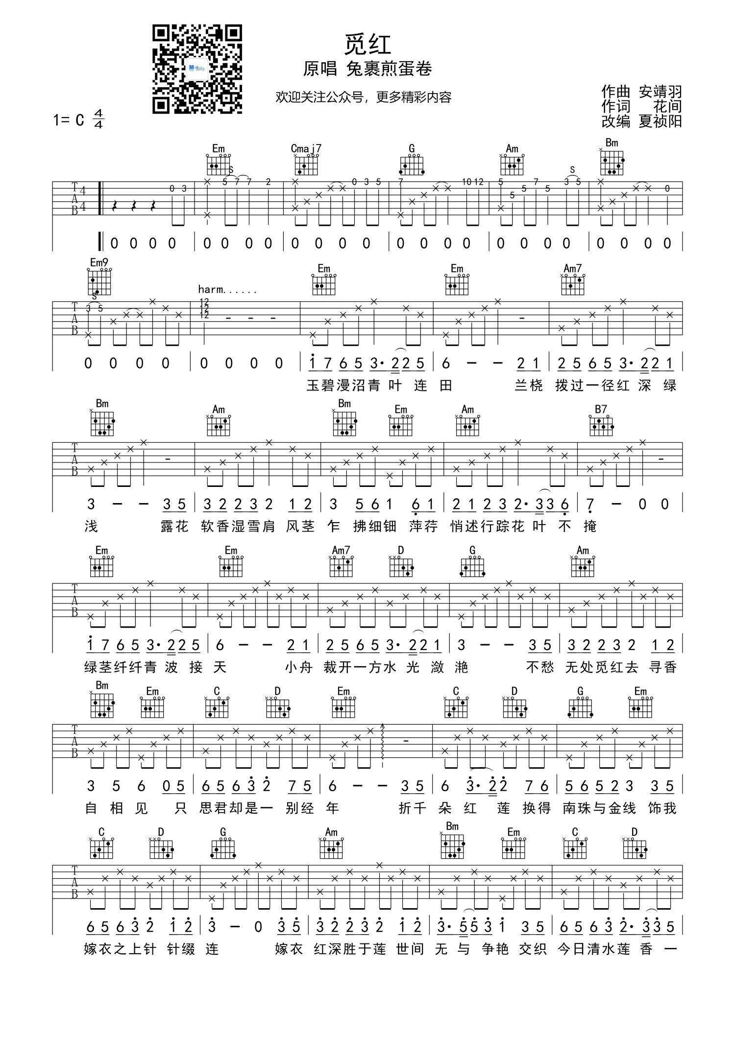 • 觅红吉他谱 - 兔裹煎蛋卷 - C调吉他弹唱谱第1张