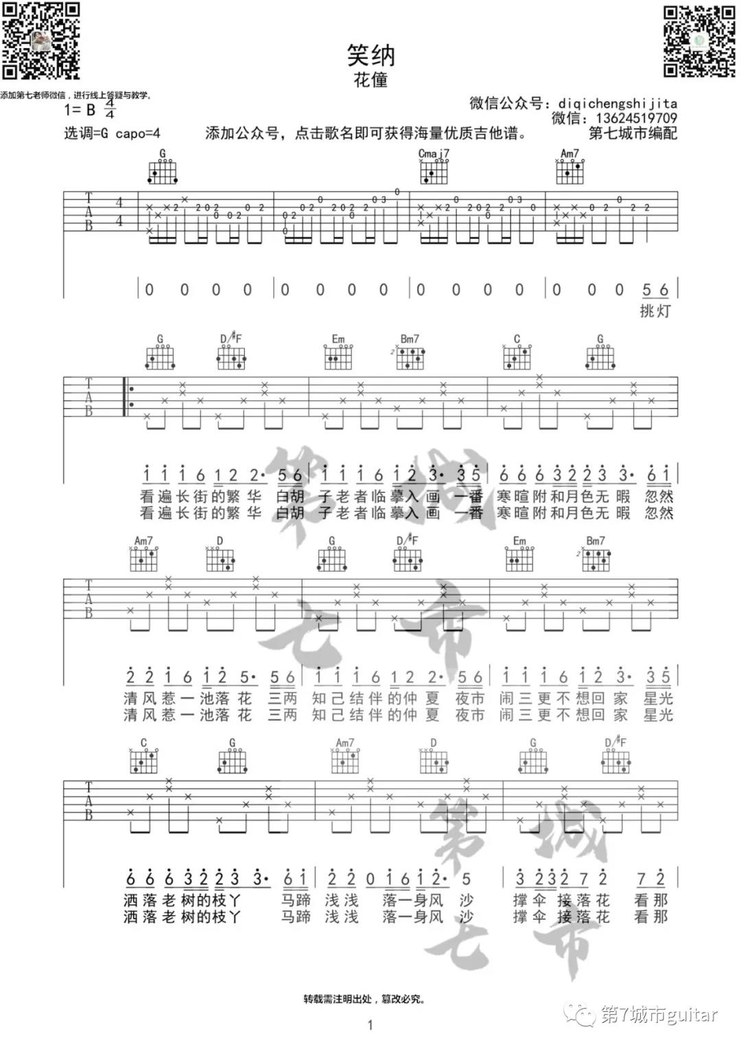 笑纳吉他谱 - 花僮 - G调吉他弹唱谱