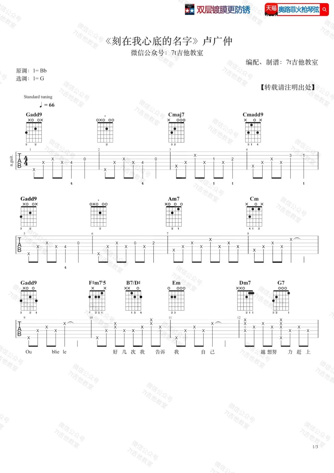 刻在我心底的名字吉他谱 - 卢广仲 - G调吉他弹唱谱